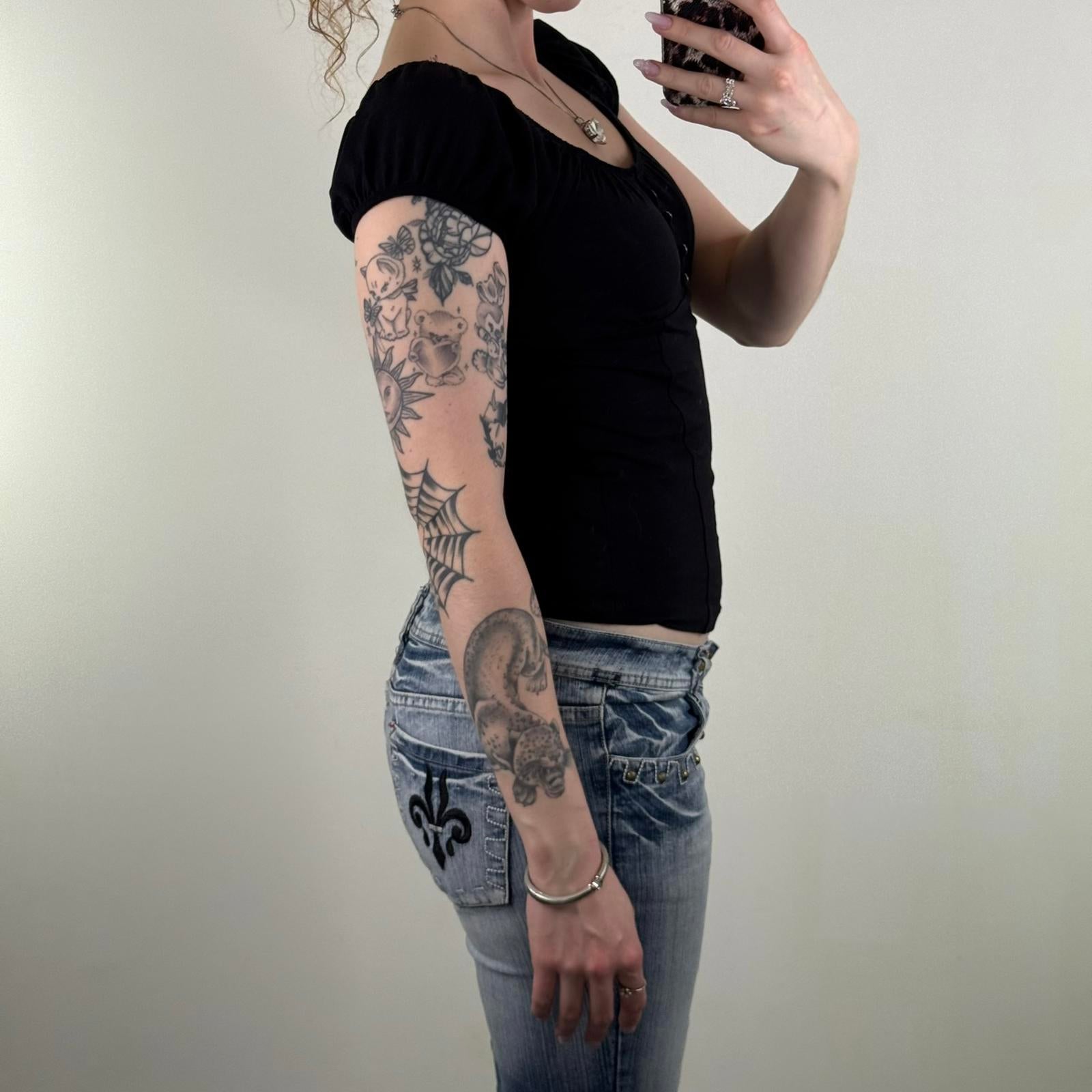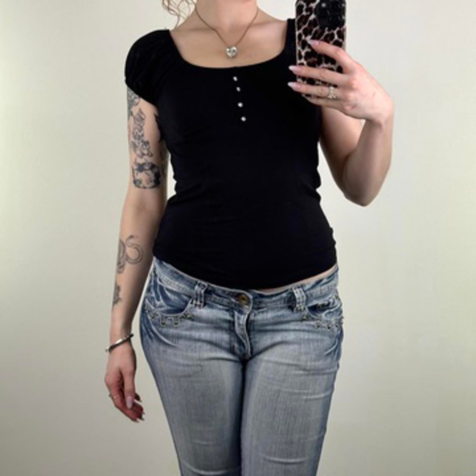 Y2K vintage milkmaid top cap sleeve rhinestone ruched bust flattering fitted