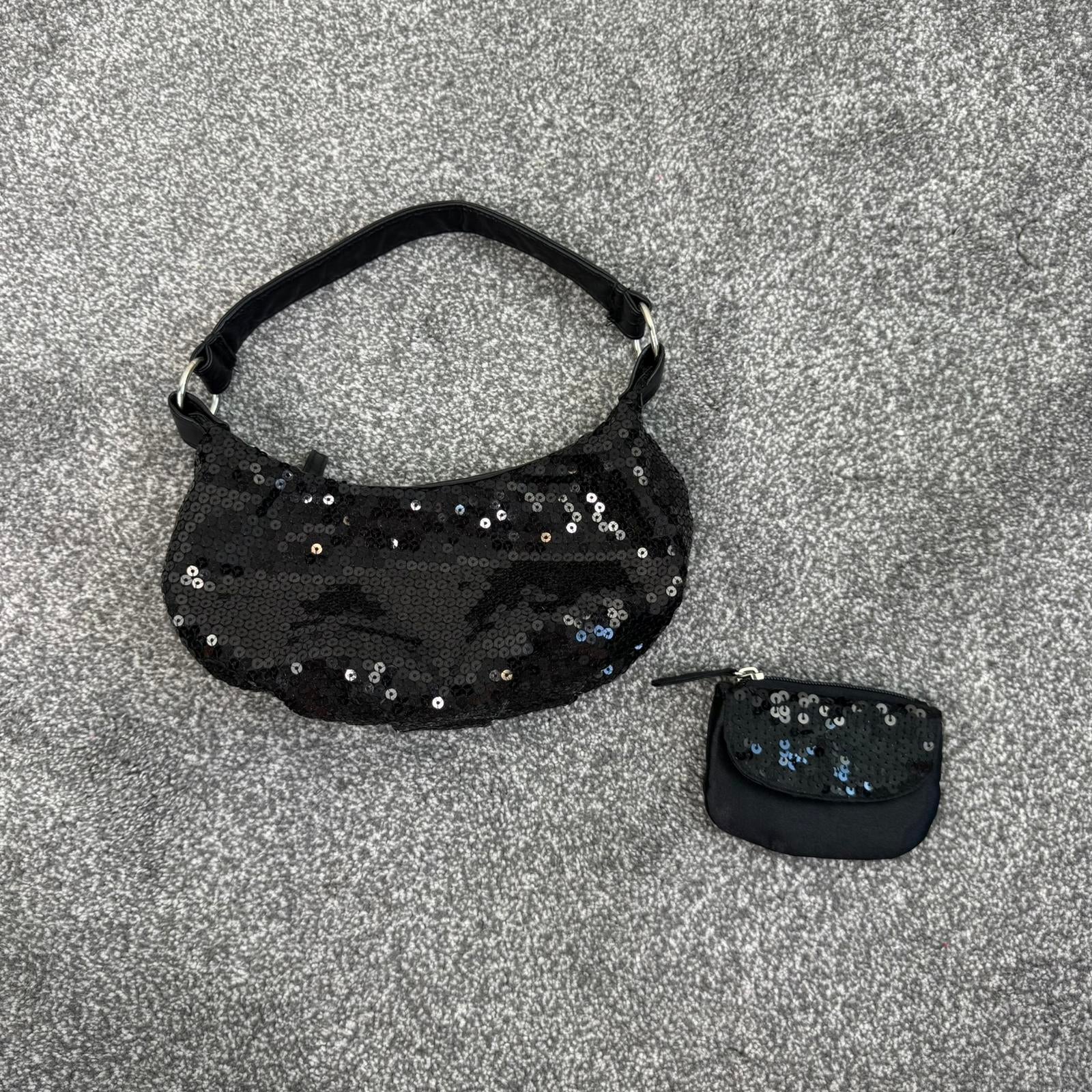 Y2K vintage mini shoulder bag sequin embellished with patching coin pouch purse