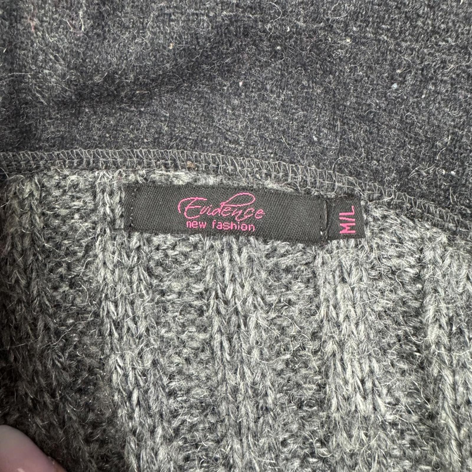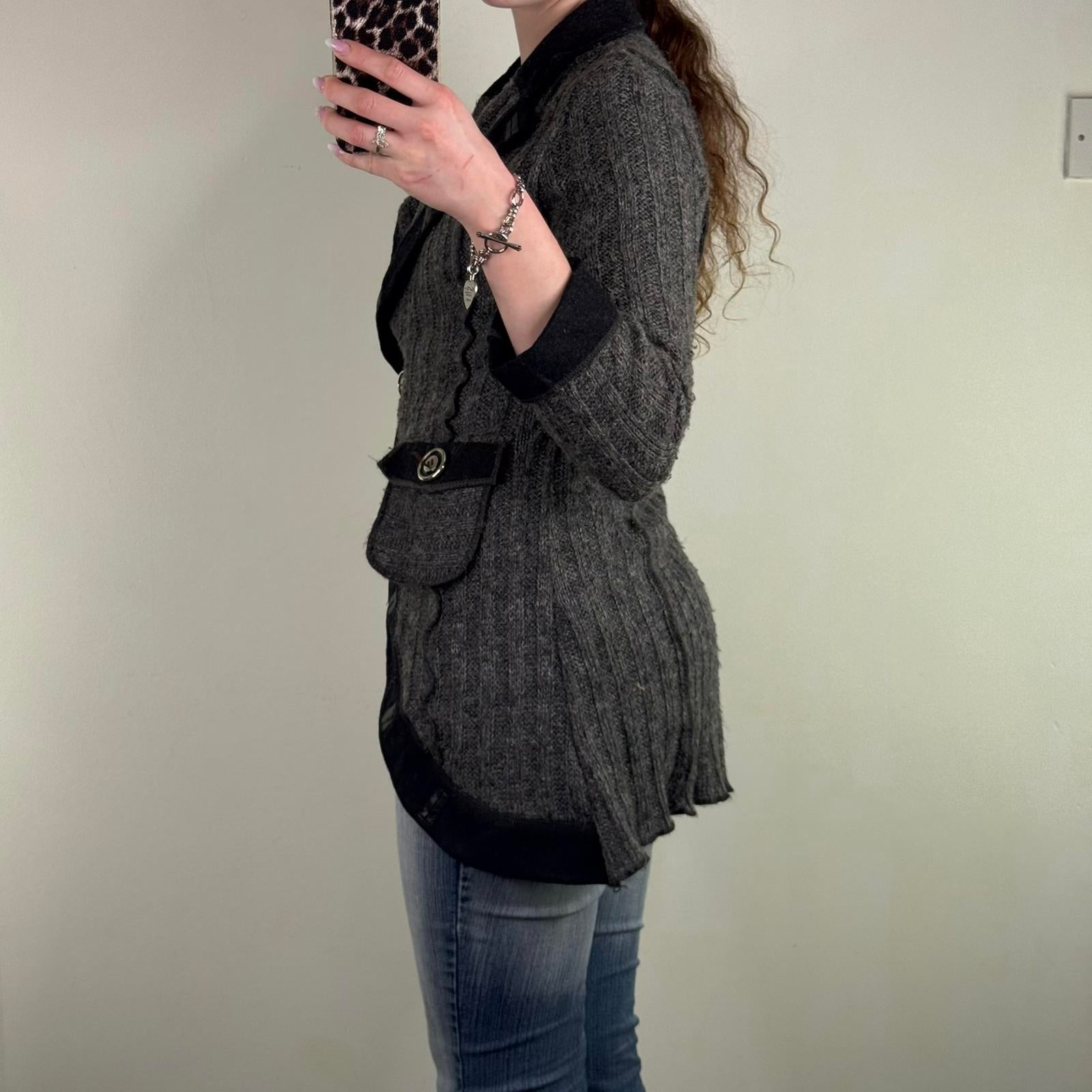 Y2K vintage mohair blend cardigan ribbed mid length v neck black grey fitted