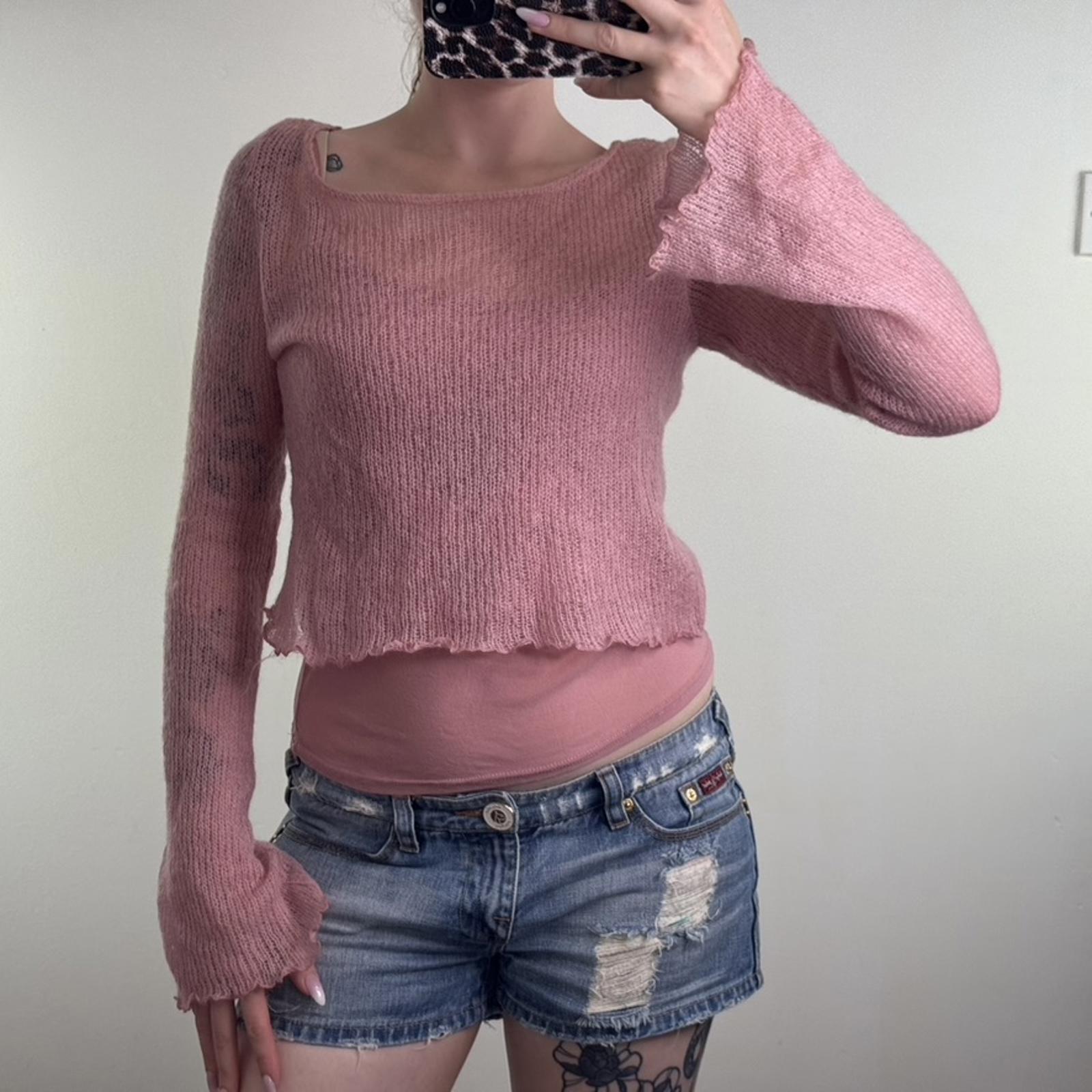 Y2K vintage Mohair blend double layered knit jumper flare sleeve lettuce hem