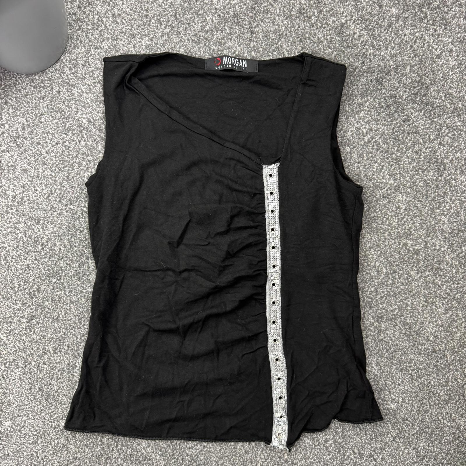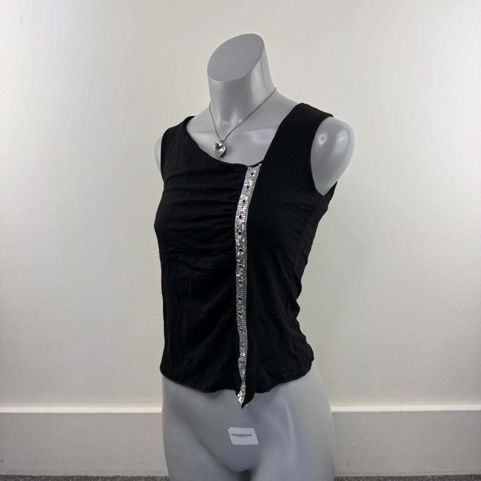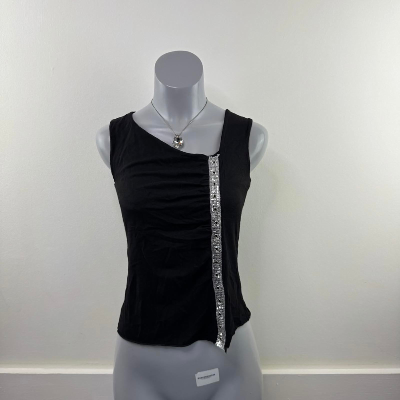 Y2K vintage Morgan De Toi tank top asymmetrical neckline ruched silver