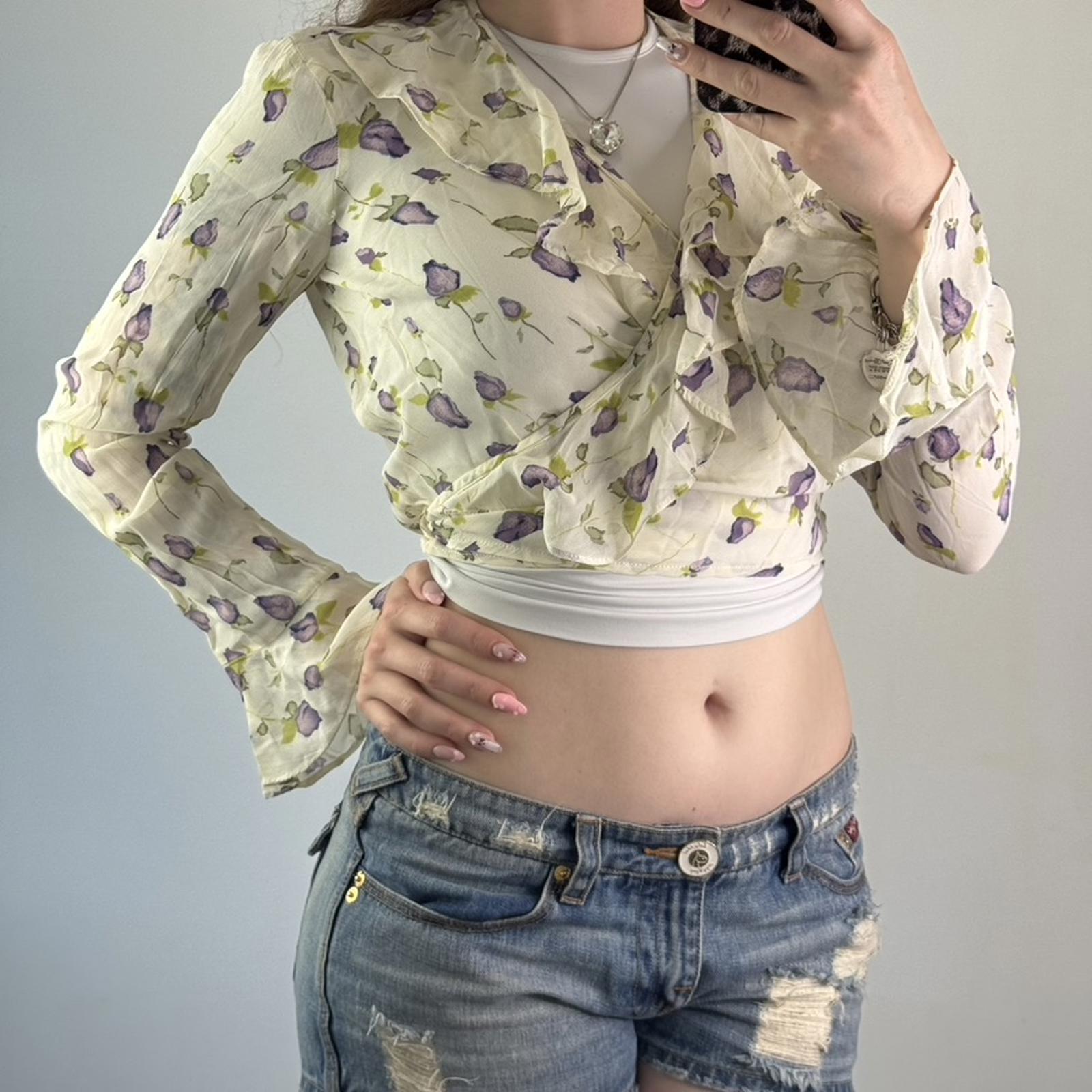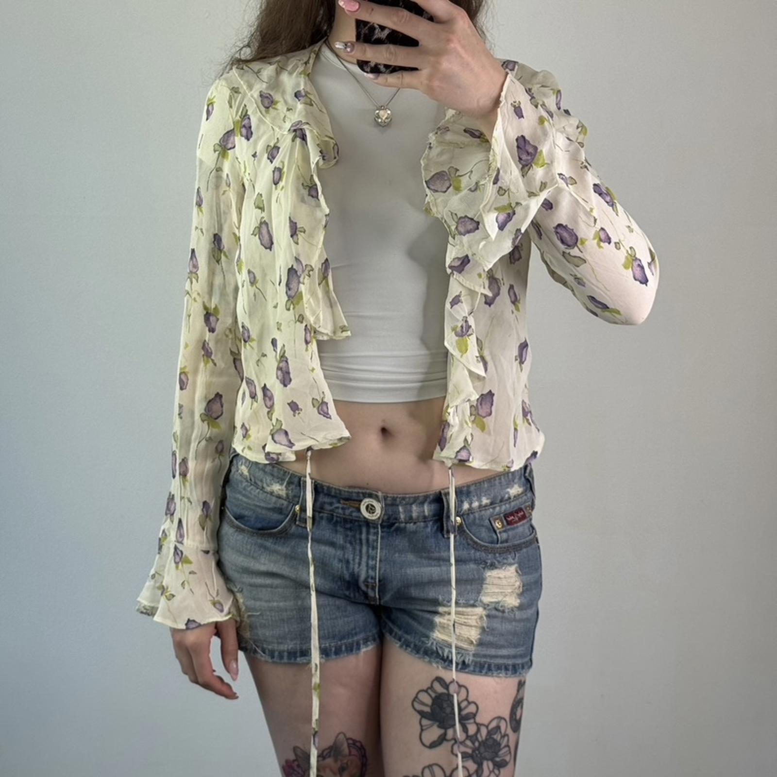 Y2K vintage Oasis floral cropped frilly cardigan tie back bow frill wraparound