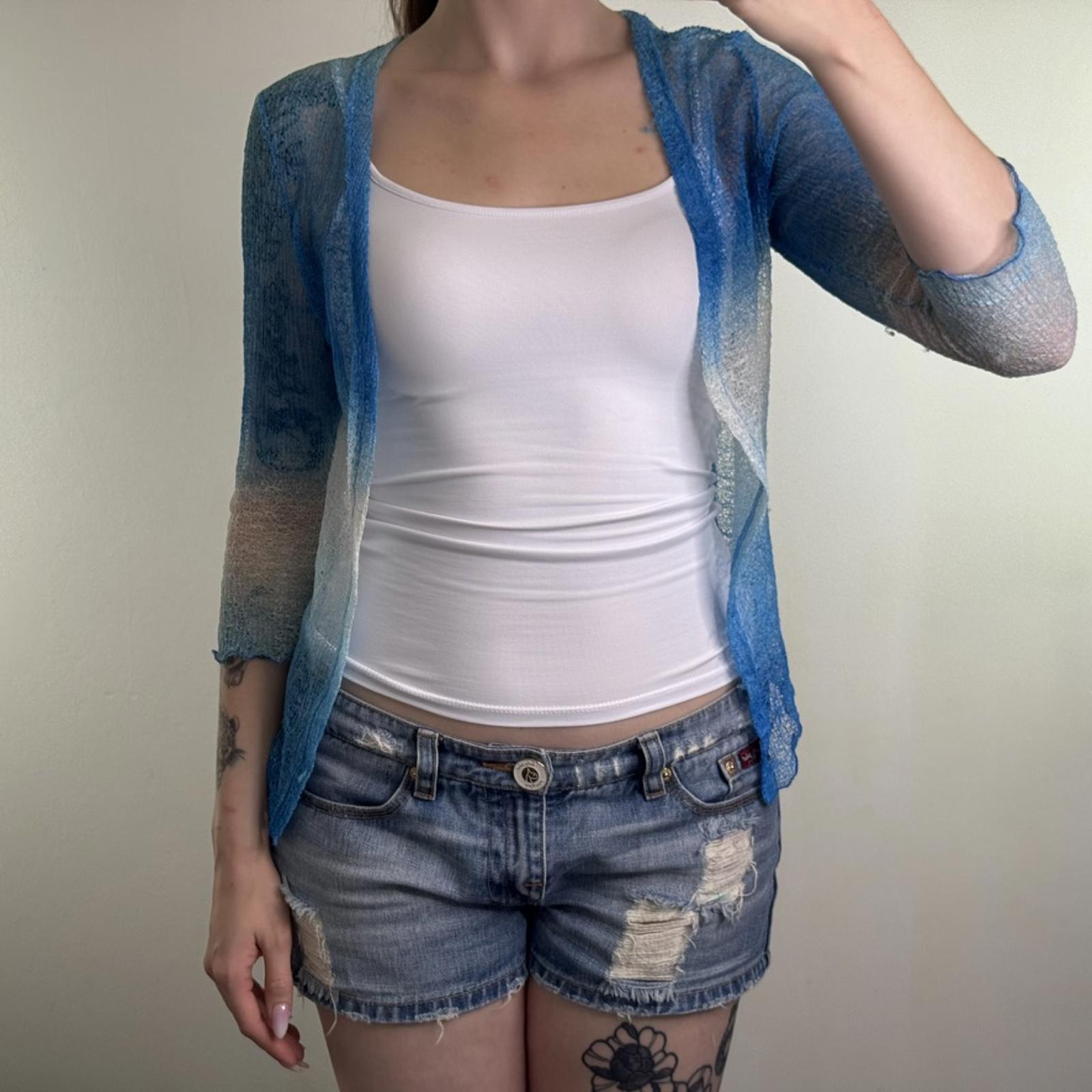 Y2K vintage ombre sheer fine knit cardigan shrug open front 3/4 sleeve