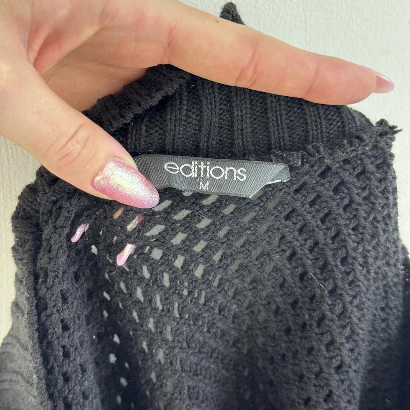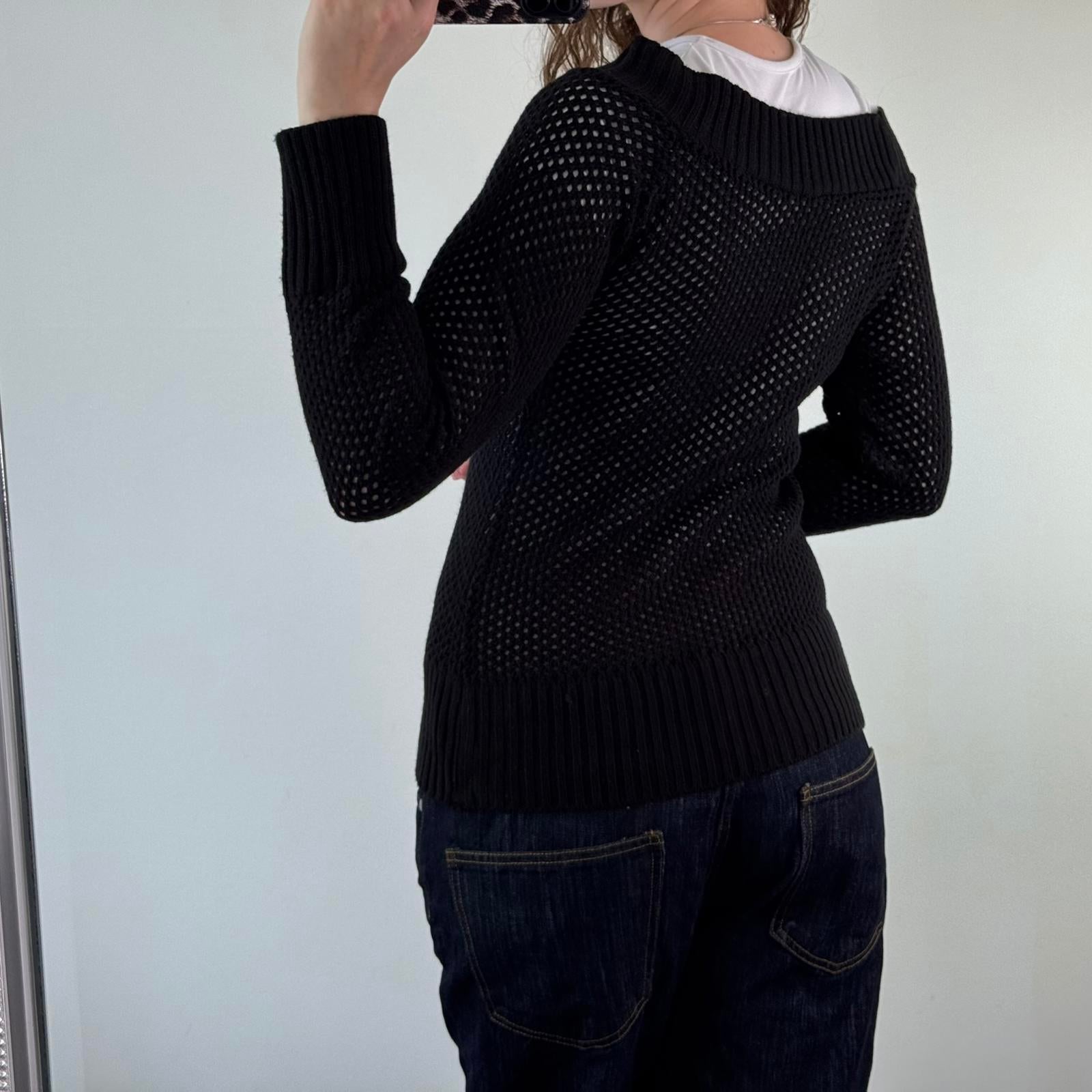 Y2K vintage perforated knitted sheer jumper open neck black