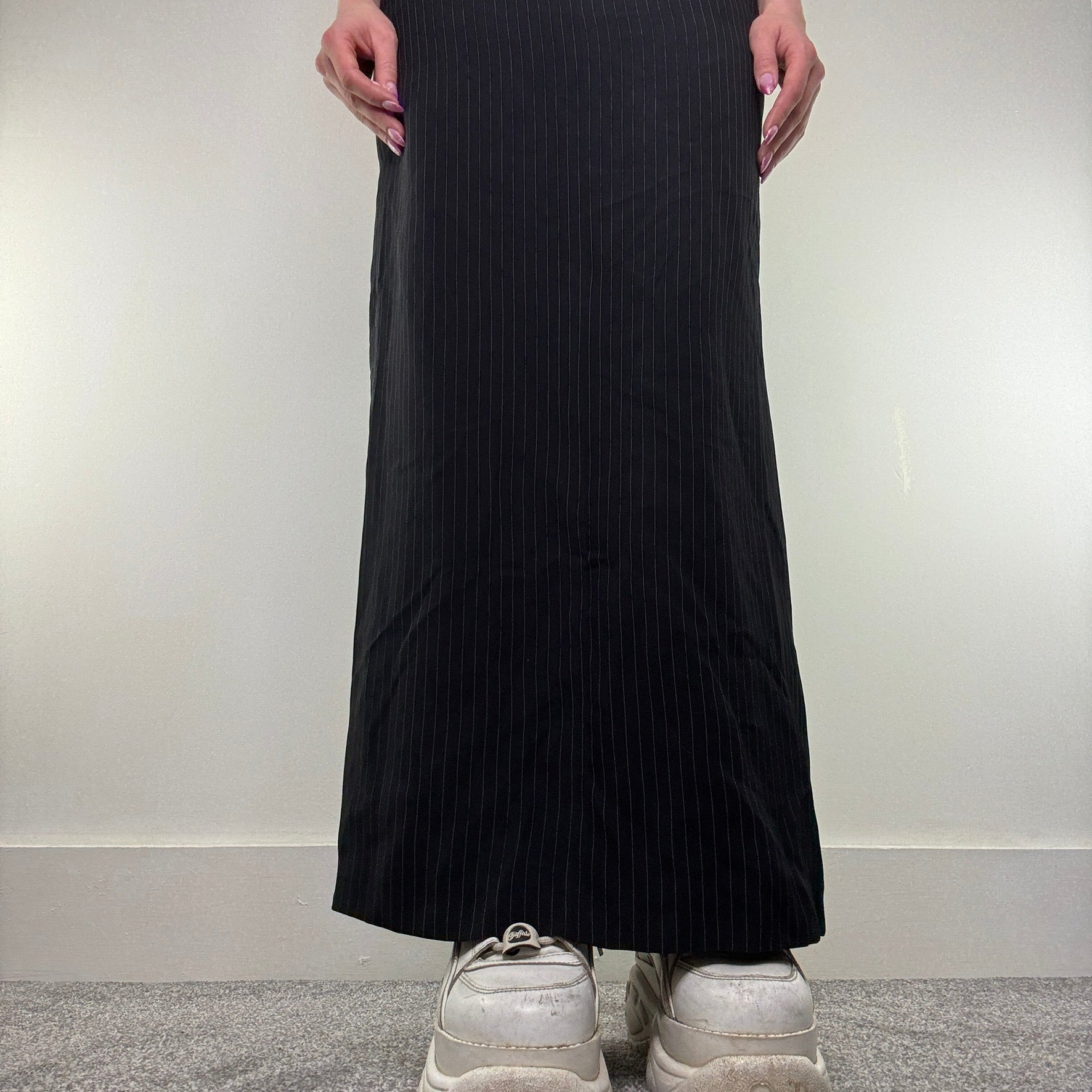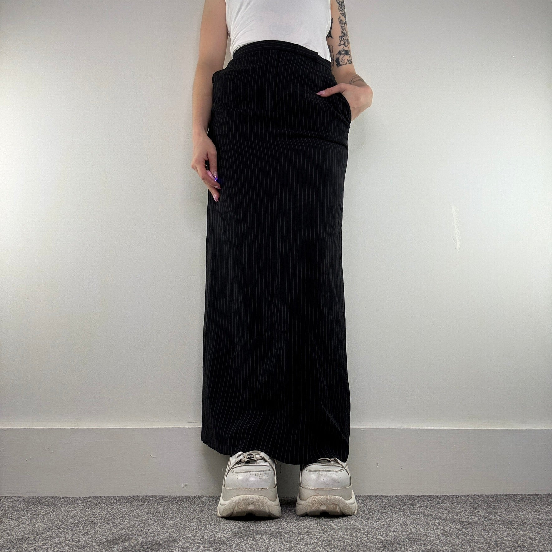 Y2K vintage pinstripe maxi skirt with pockets suit formal tailored office smart
