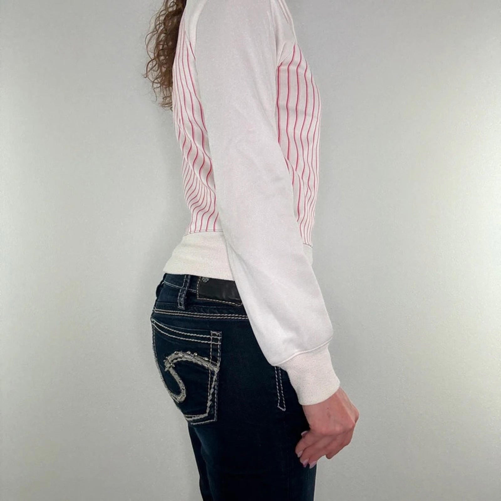 Y2K vintage Puma pinstripe zip up jumper white baby pink