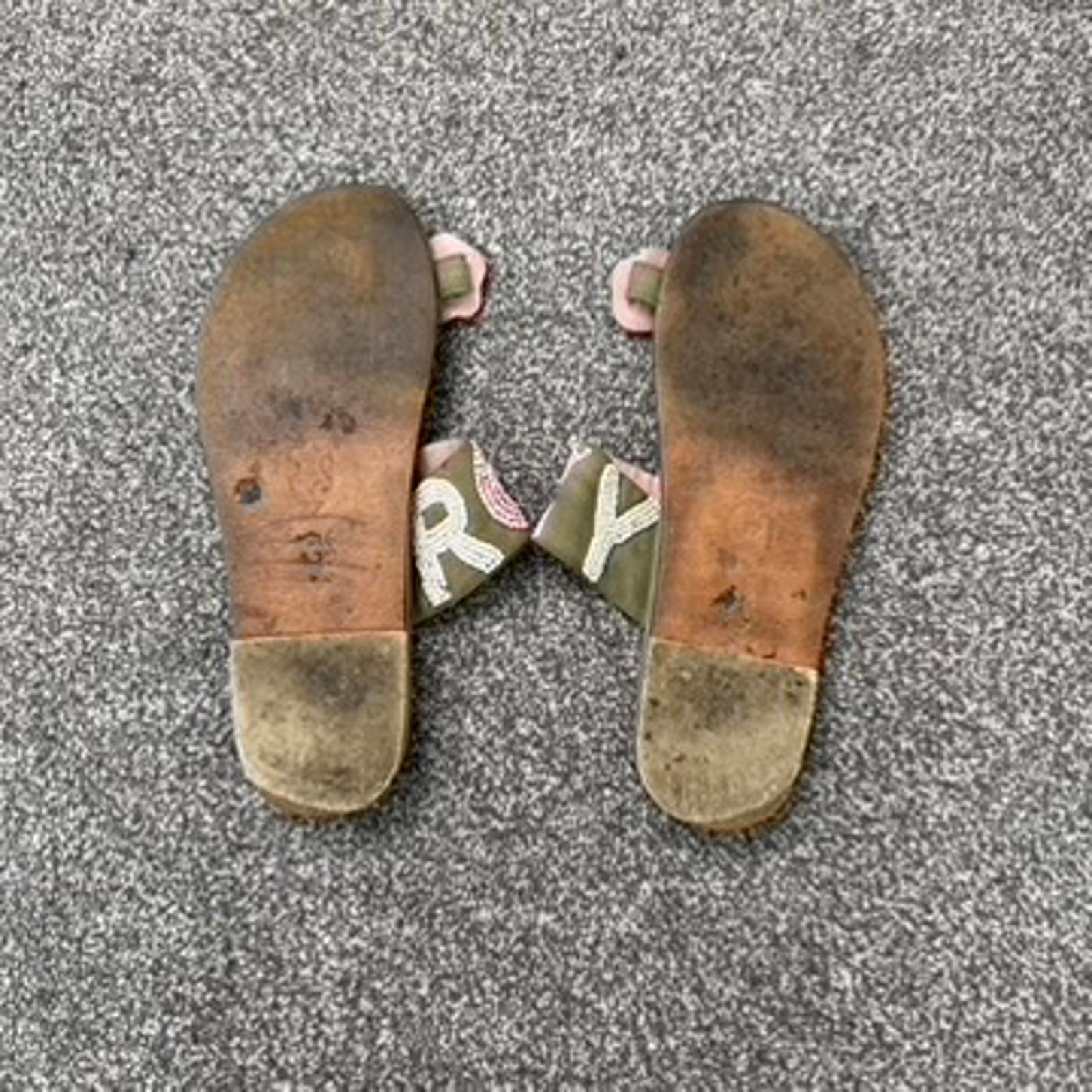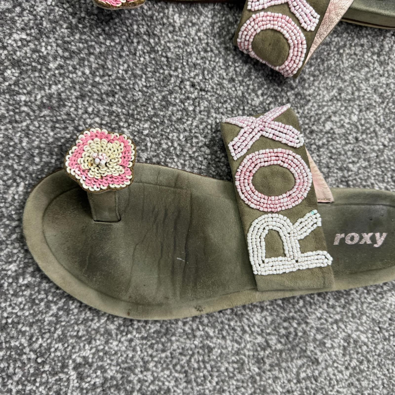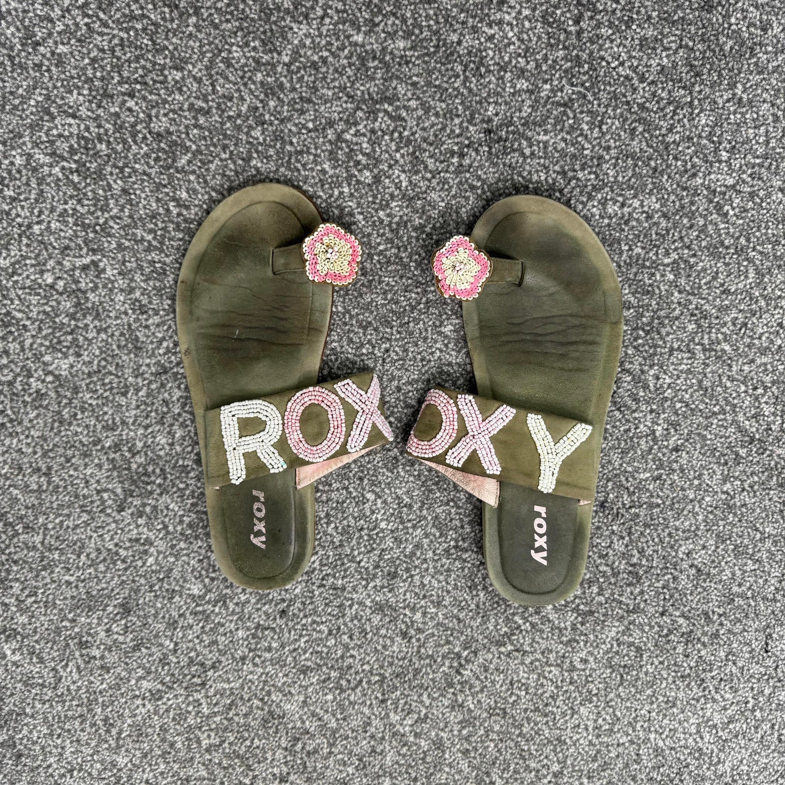 Y2K vintage Roxy beaded sequin floral summer flip flops flat sandals toe ring