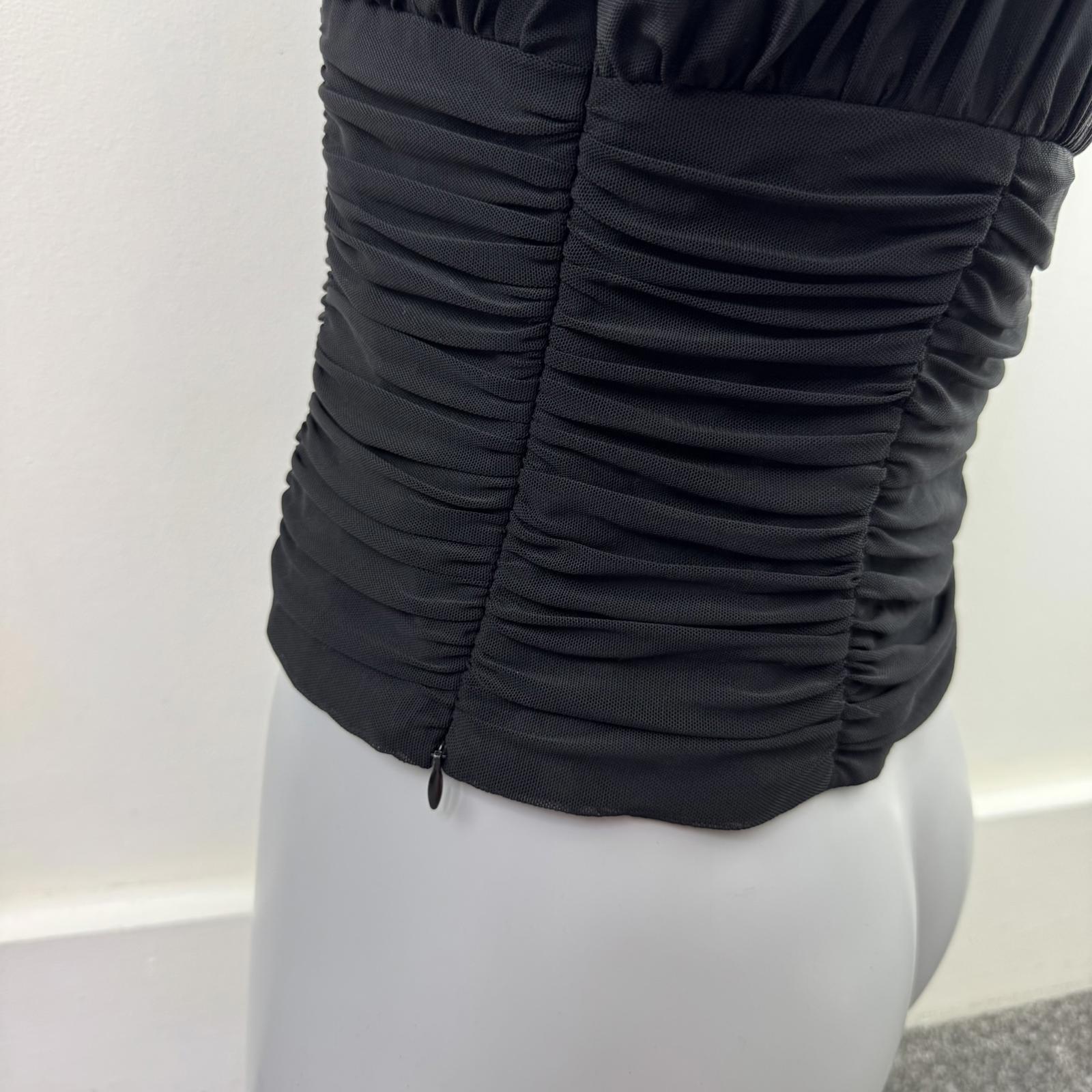 Y2K vintage ruched mesh top bustier black strappy straight neckline