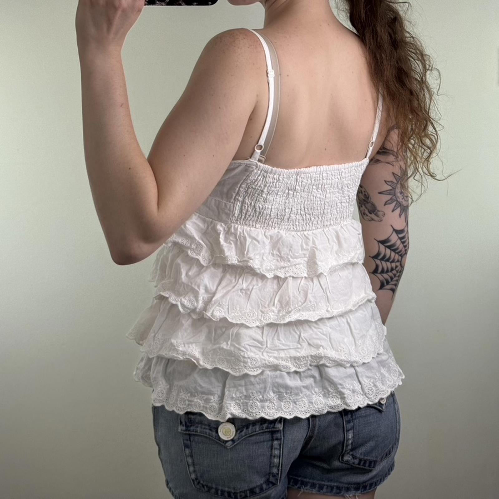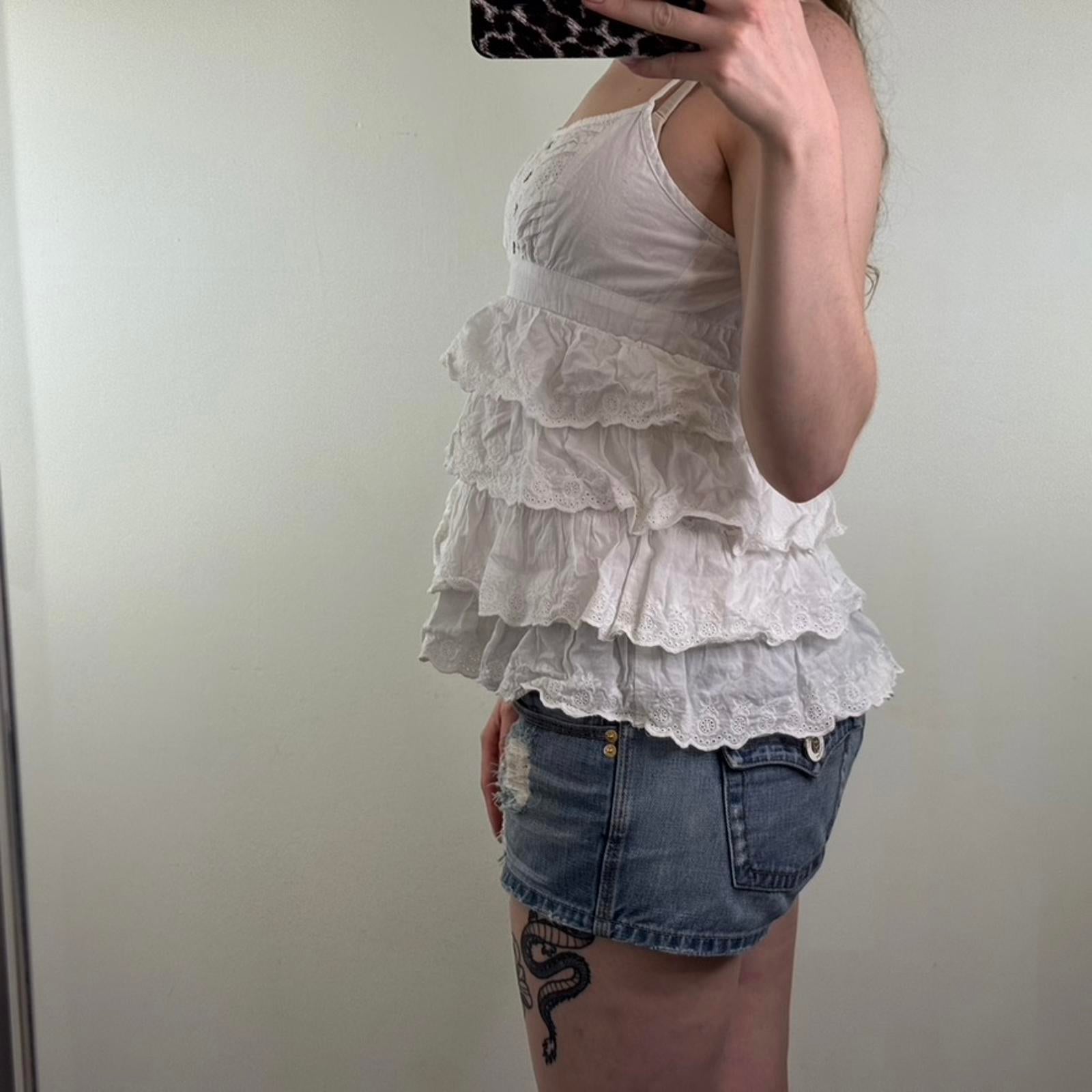 Y2K vintage ruffle cami top strappy broderie anglaise buttons frill