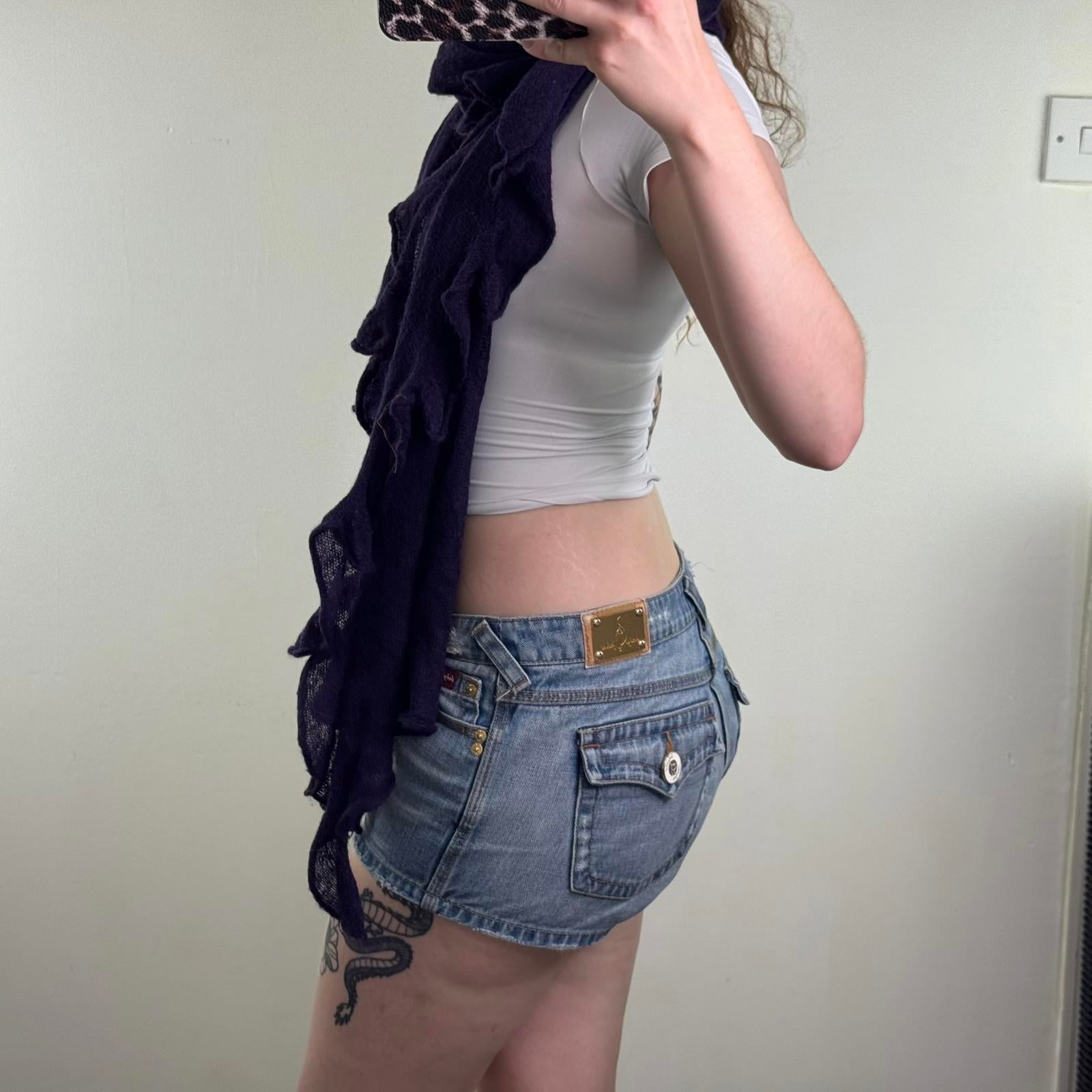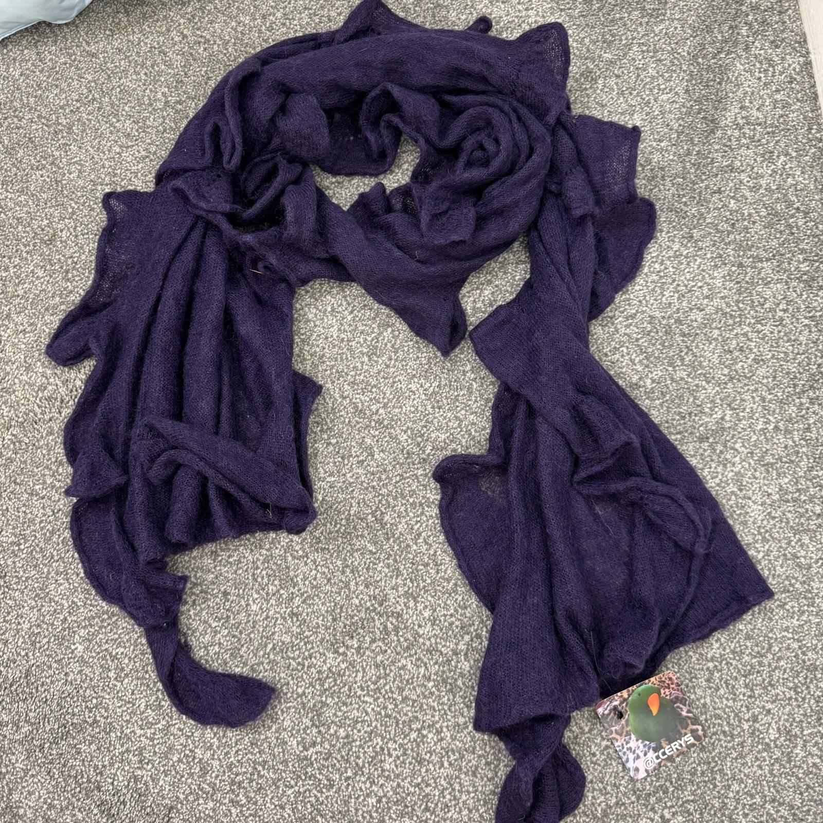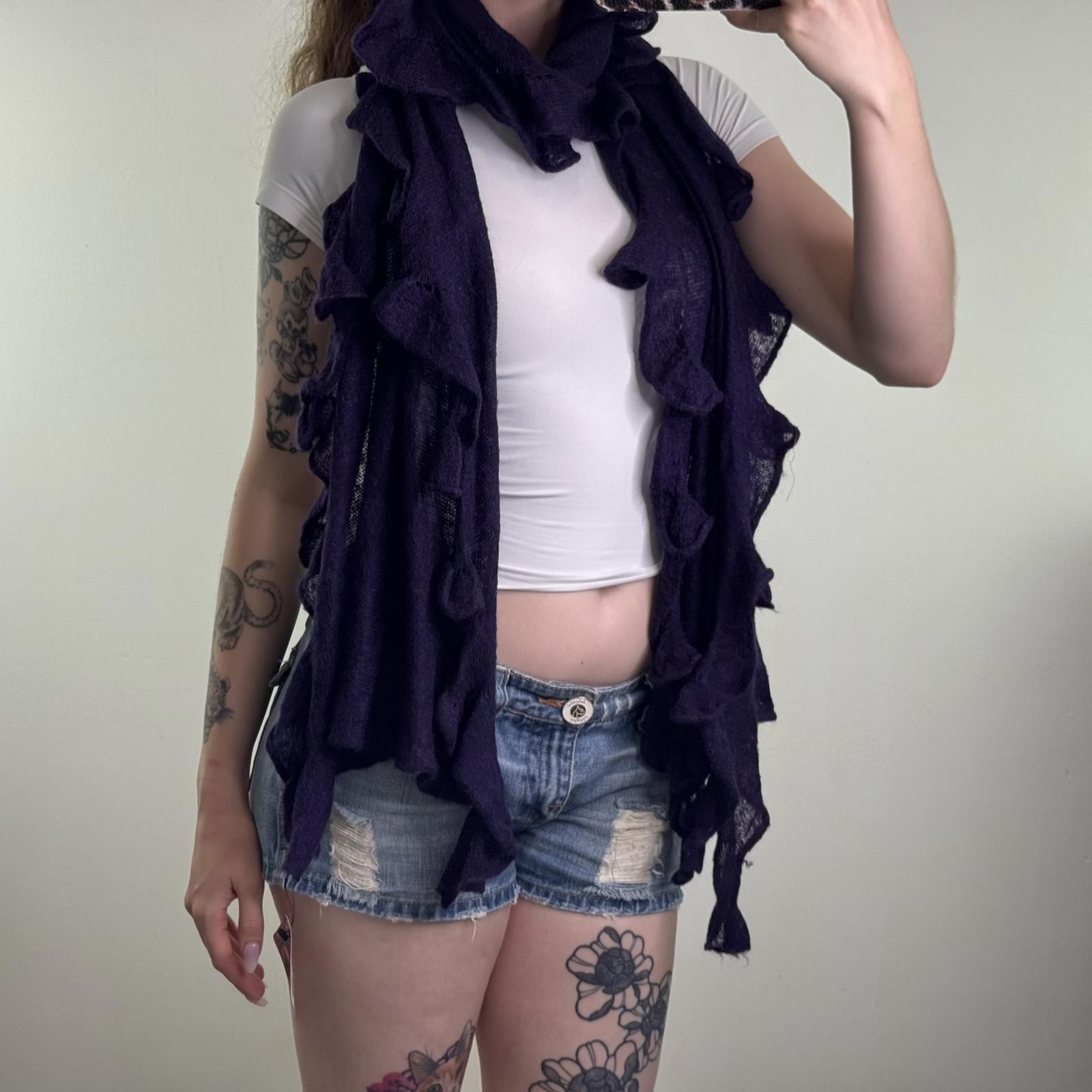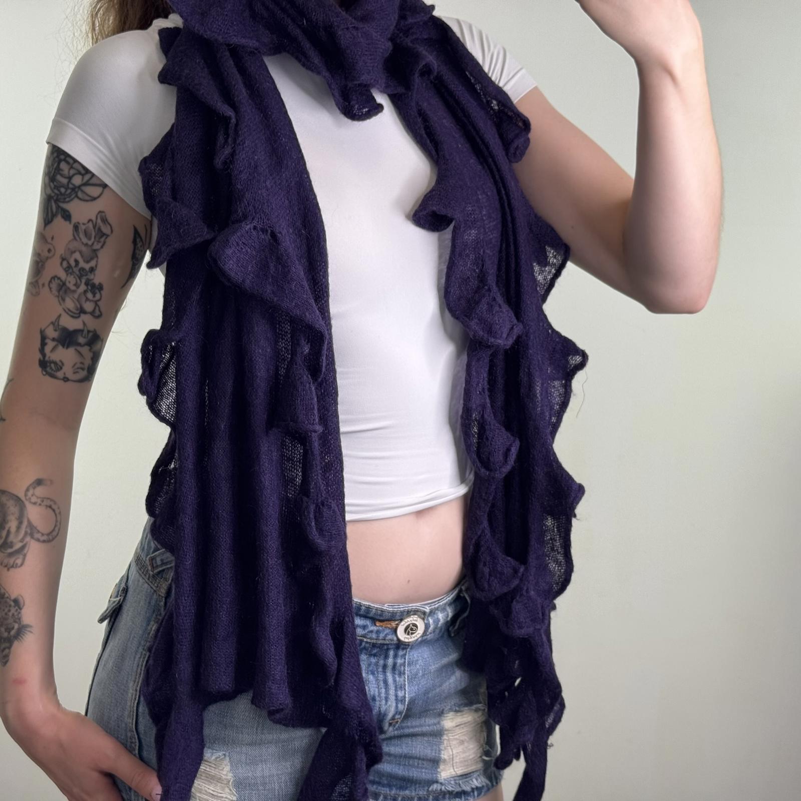 Y2K vintage ruffle long scarf dark purple frill wool blend