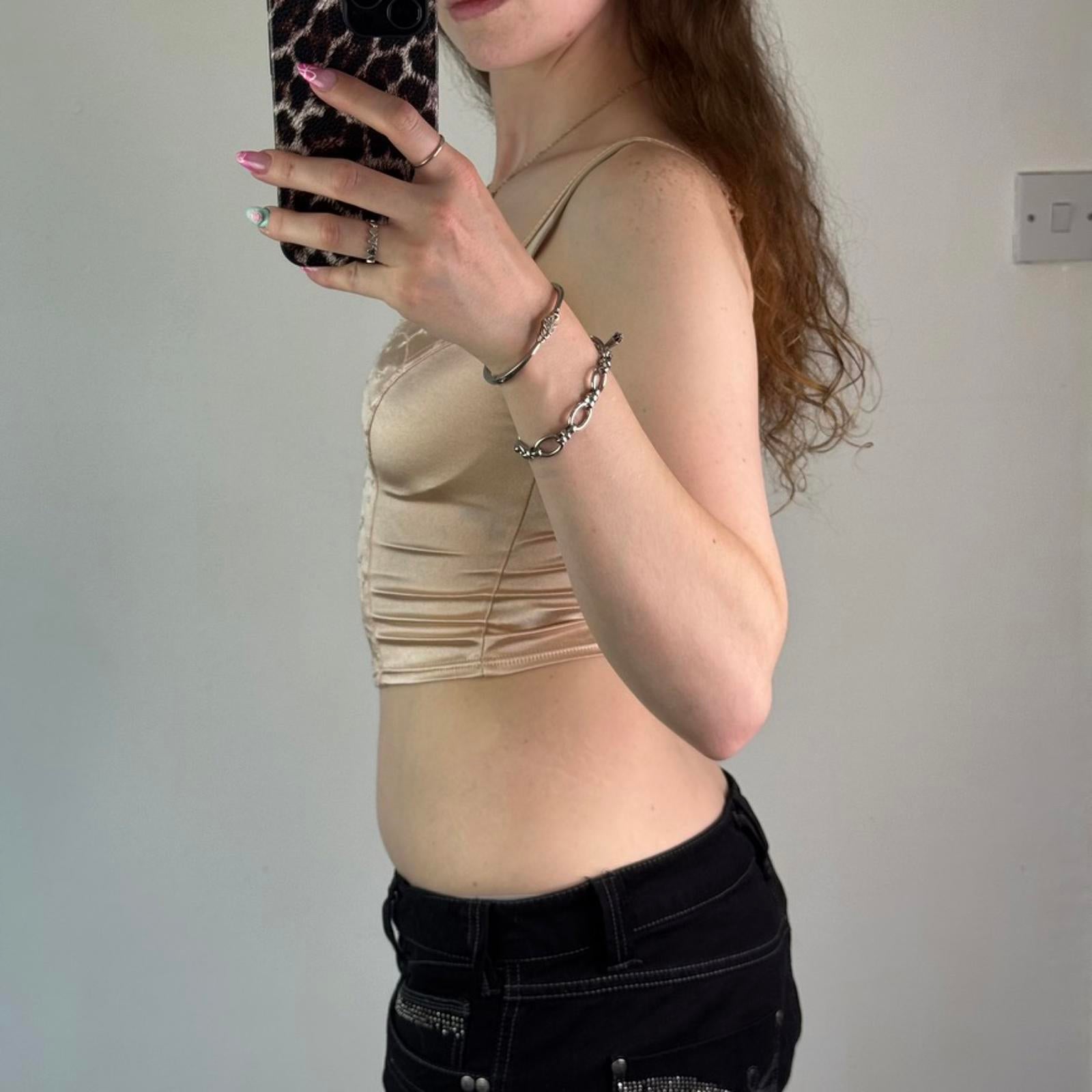 Y2K vintage satin floral embroidered cami top cropped strappy stretchy