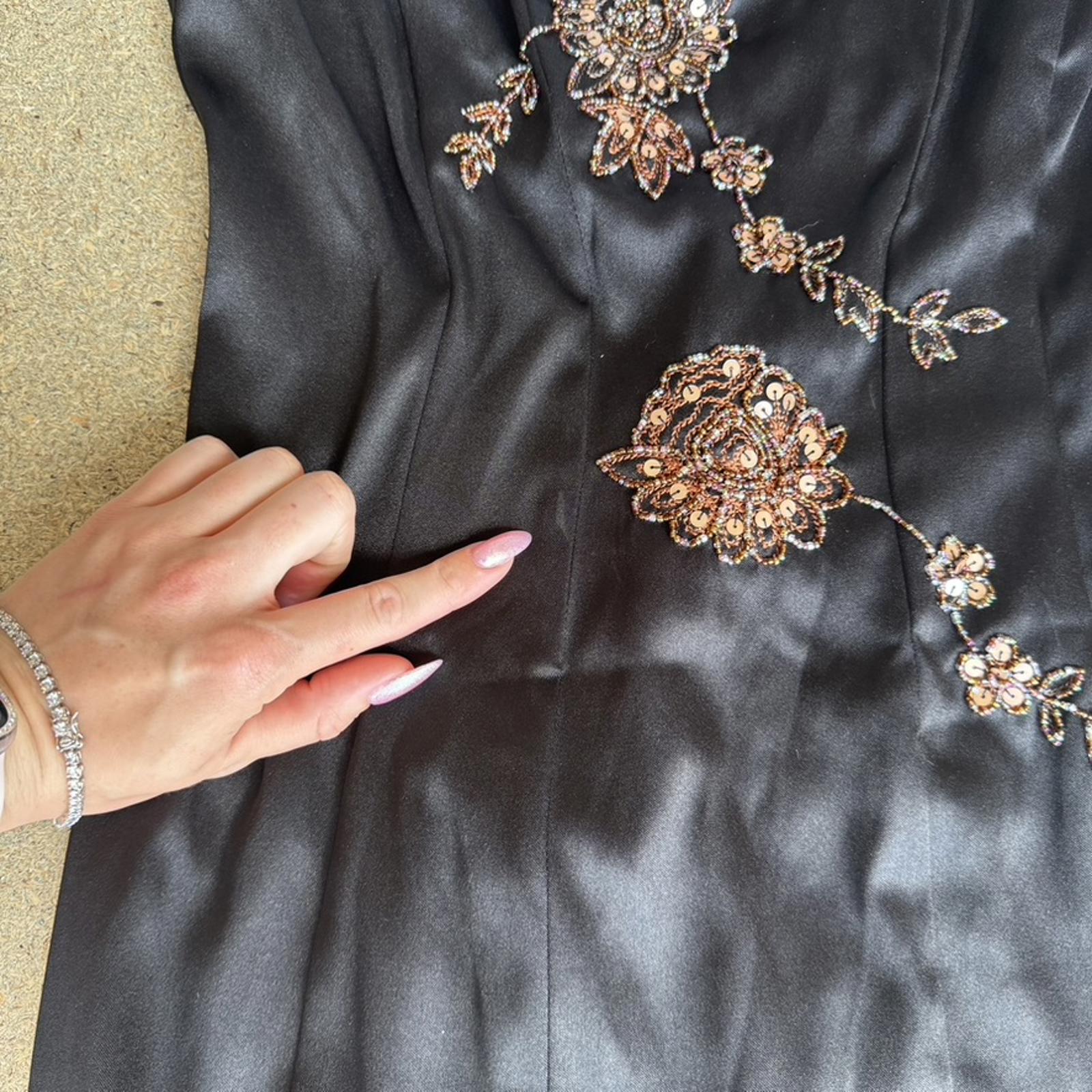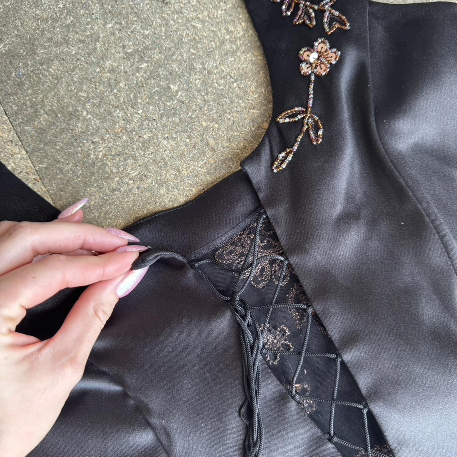 Sequin beaded flower design, lace up back detail