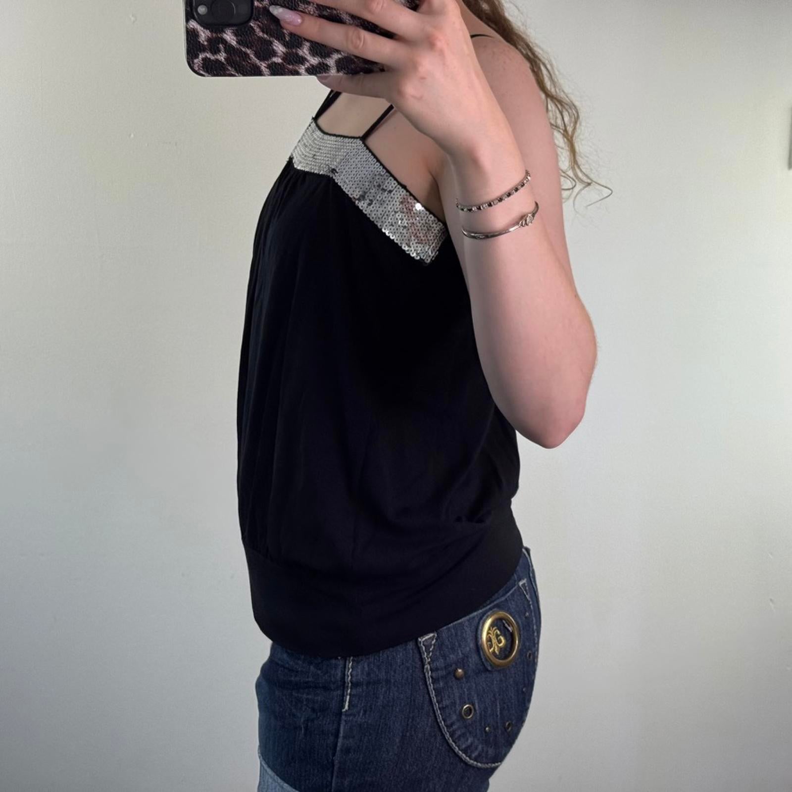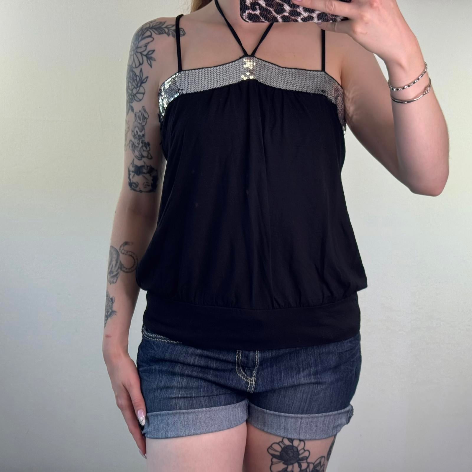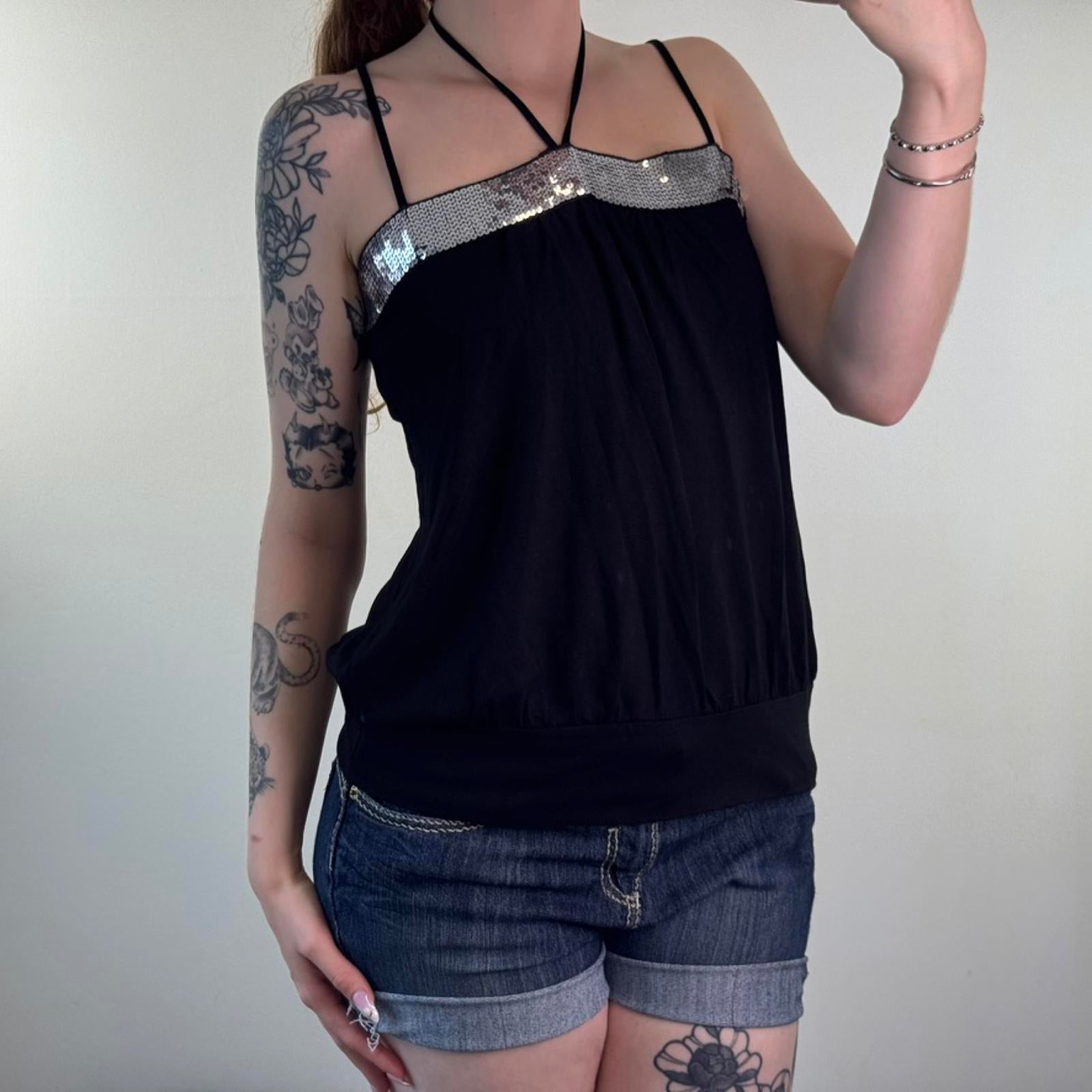 Y2K vintage sequin embellished cami top halter neck peplum clubbing party