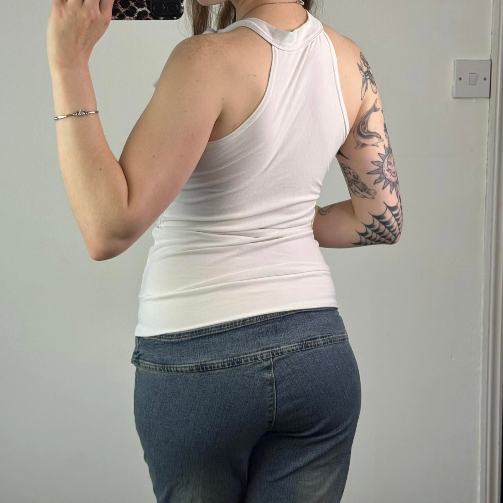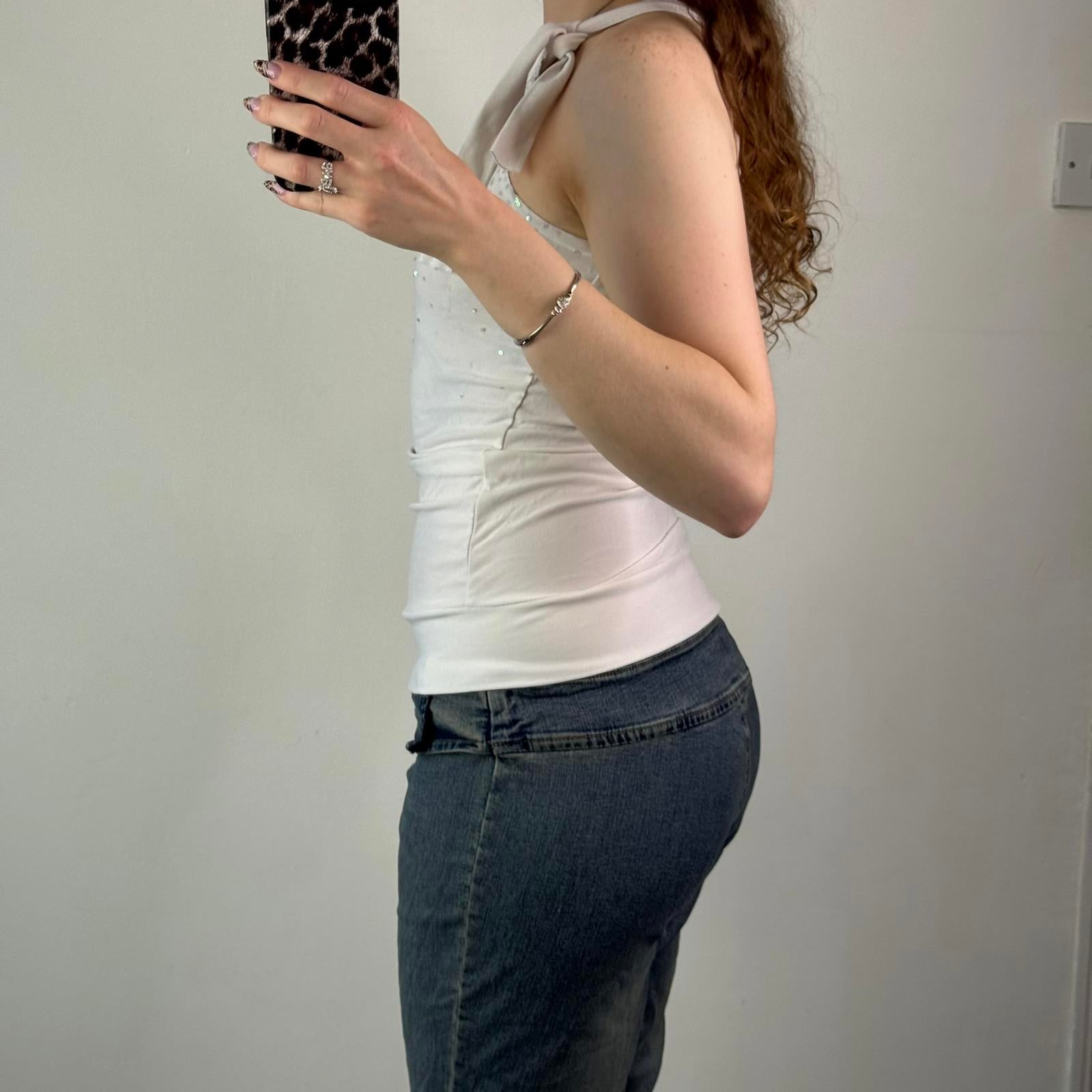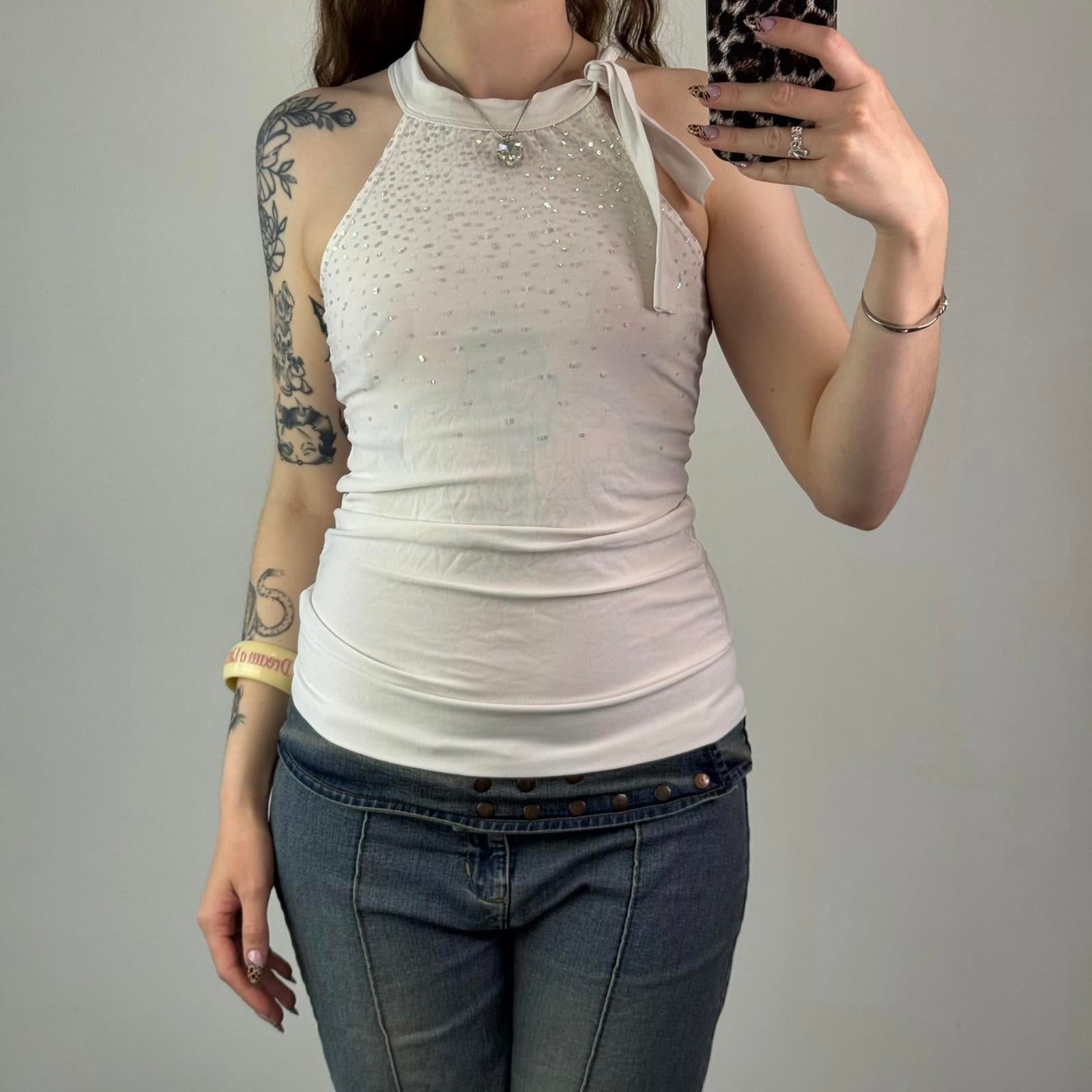 Y2K vintage sequin embellished high neck tank top bow stretchy white