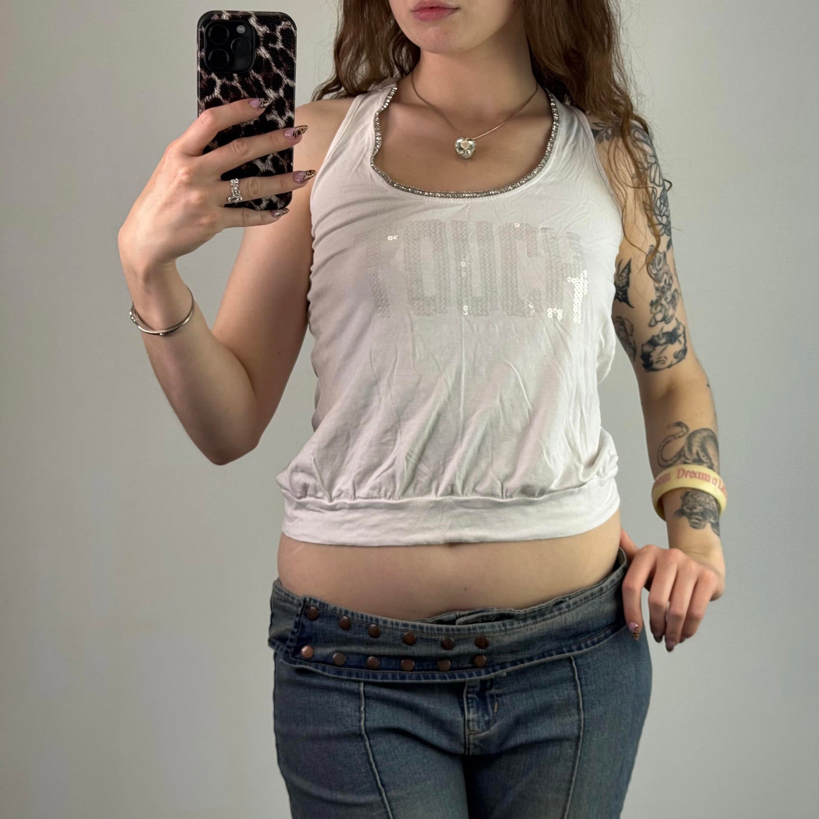 Y2K vintage sequin rhinestone tank top rhinestone racerback touch slogan cropped