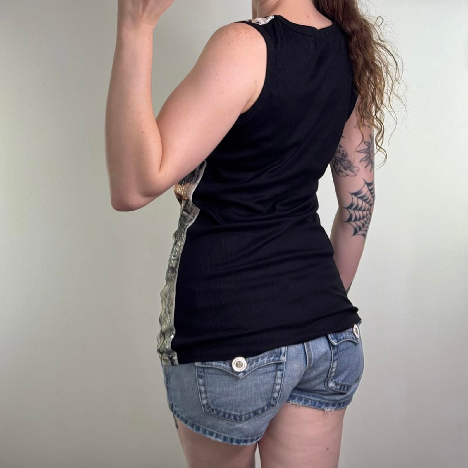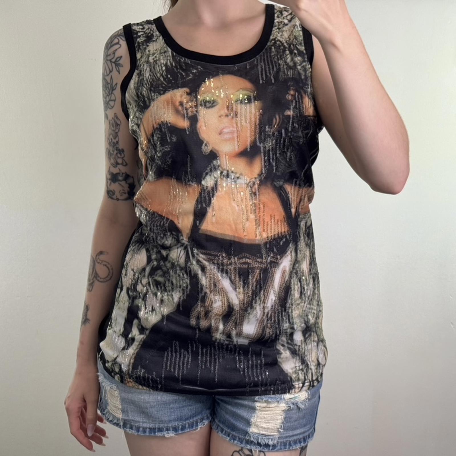 Y2K vintage sequin tank top graphic print woman ribbed long line length