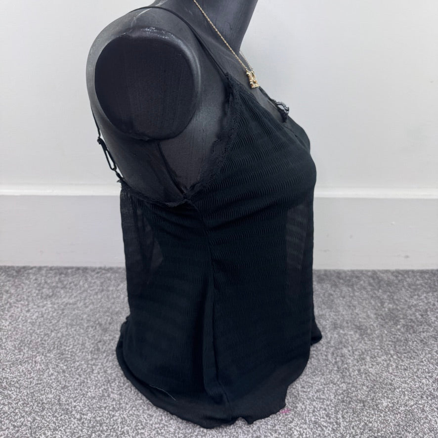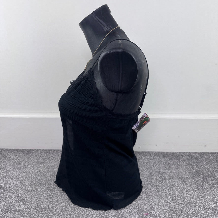 Lace trim, v neck, strappy top, adjustable straps, striped