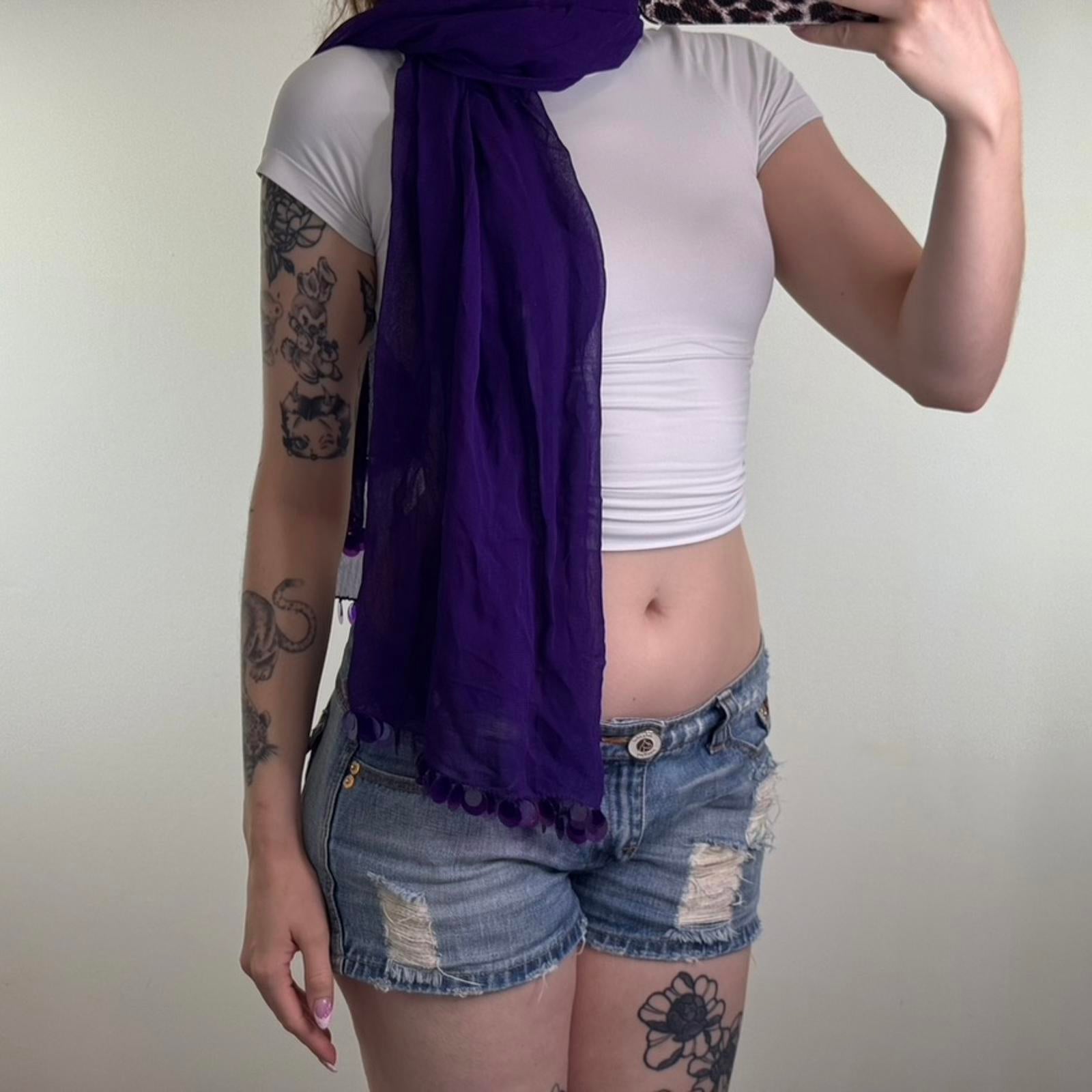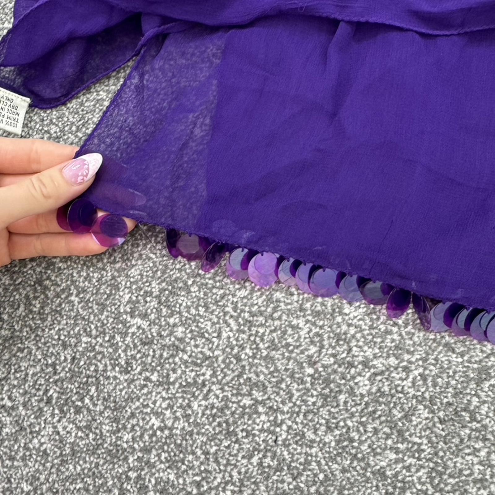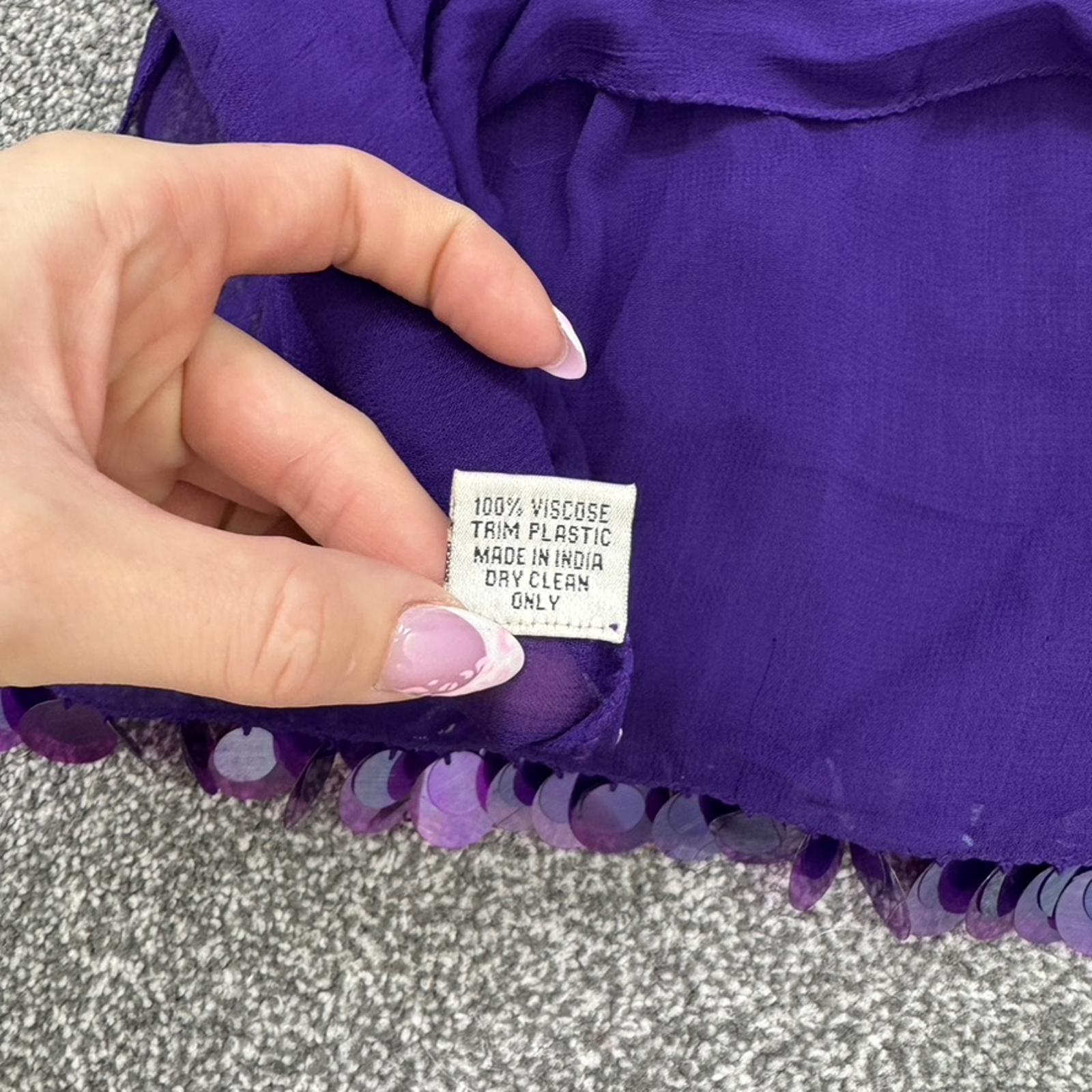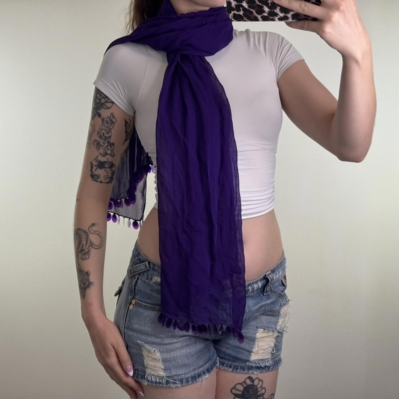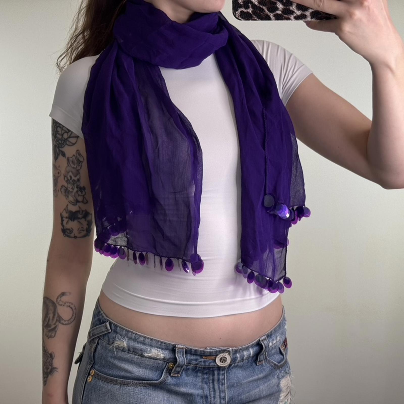 Y2K vintage sheer large scarf beaded sequin trim lightweight purple