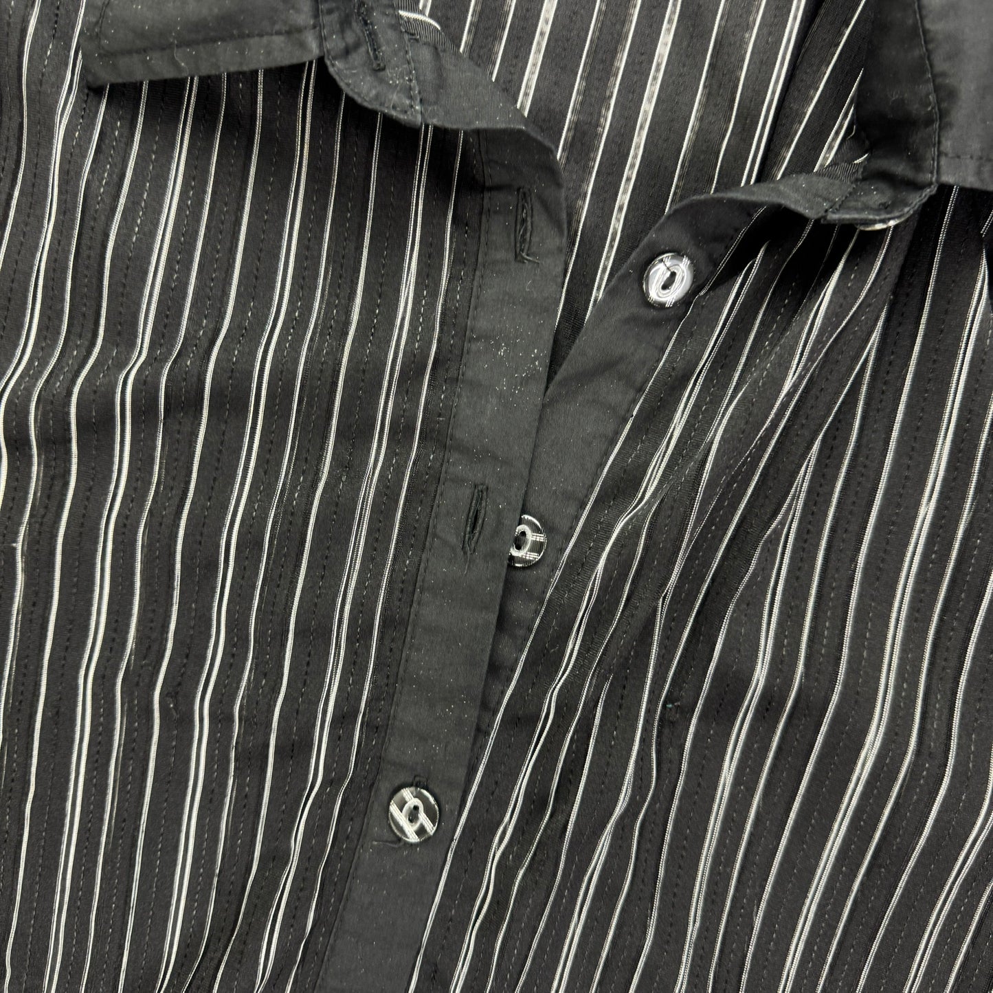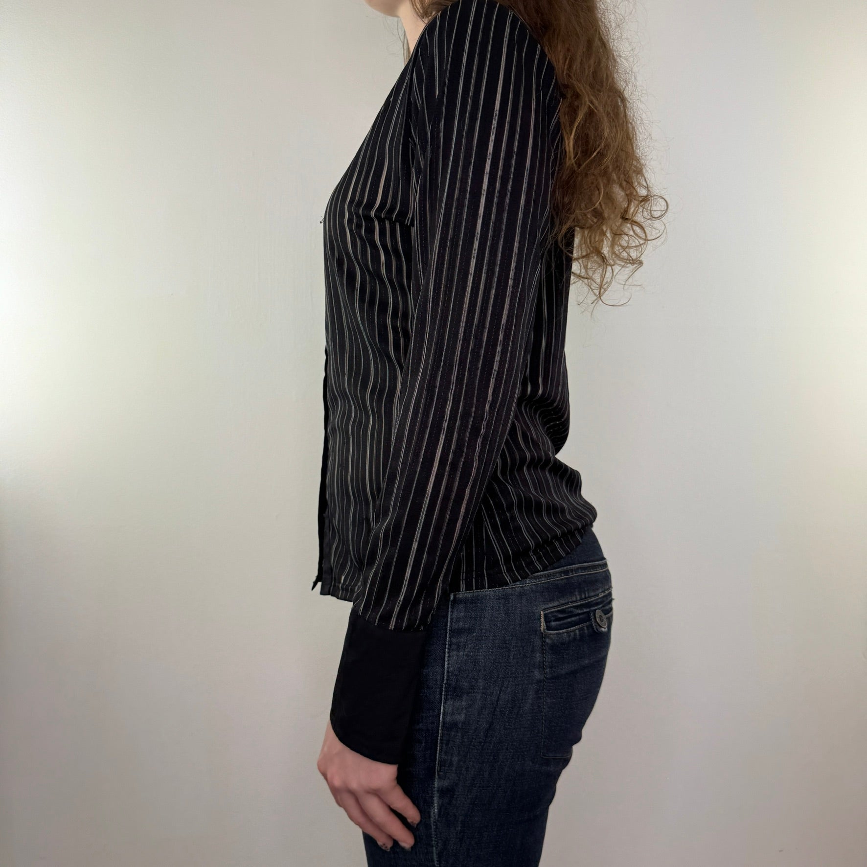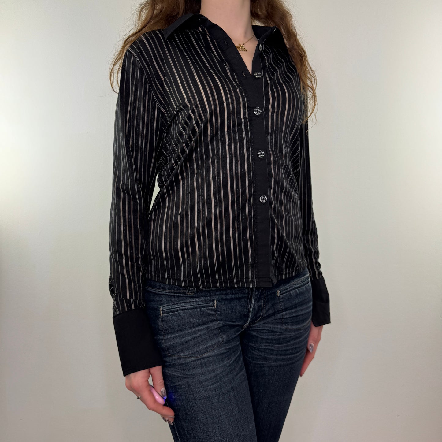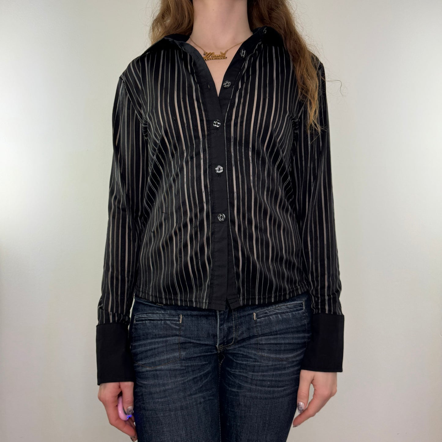 Y2K vintage sheer pinstripe button up stretchy long sleeve shirt