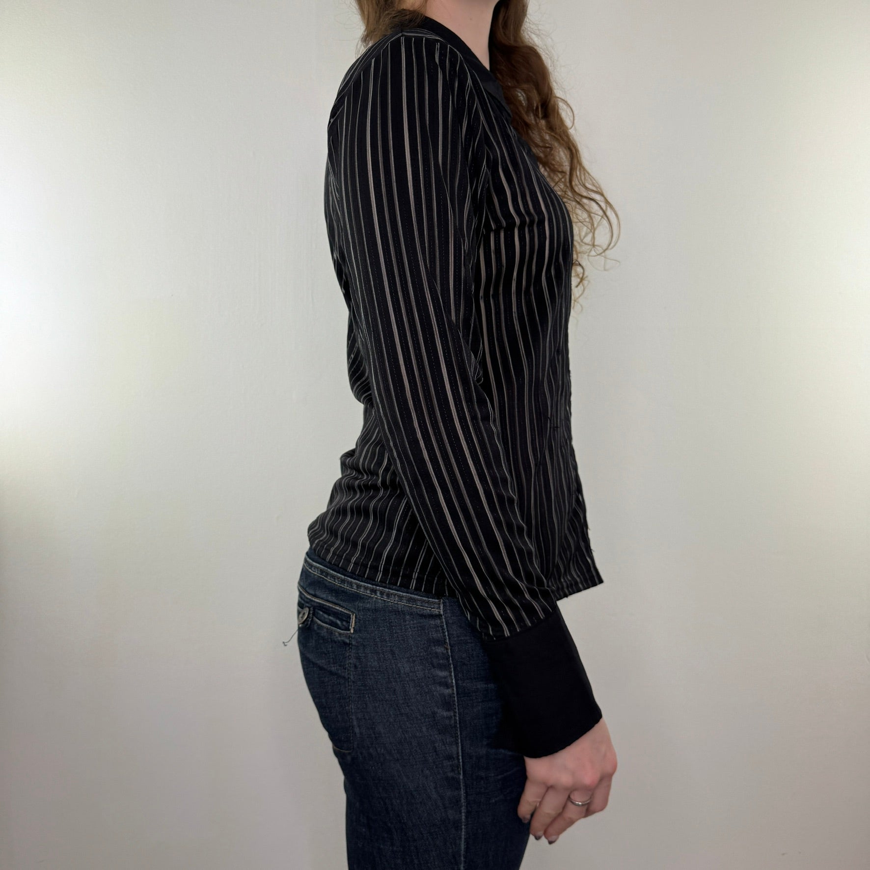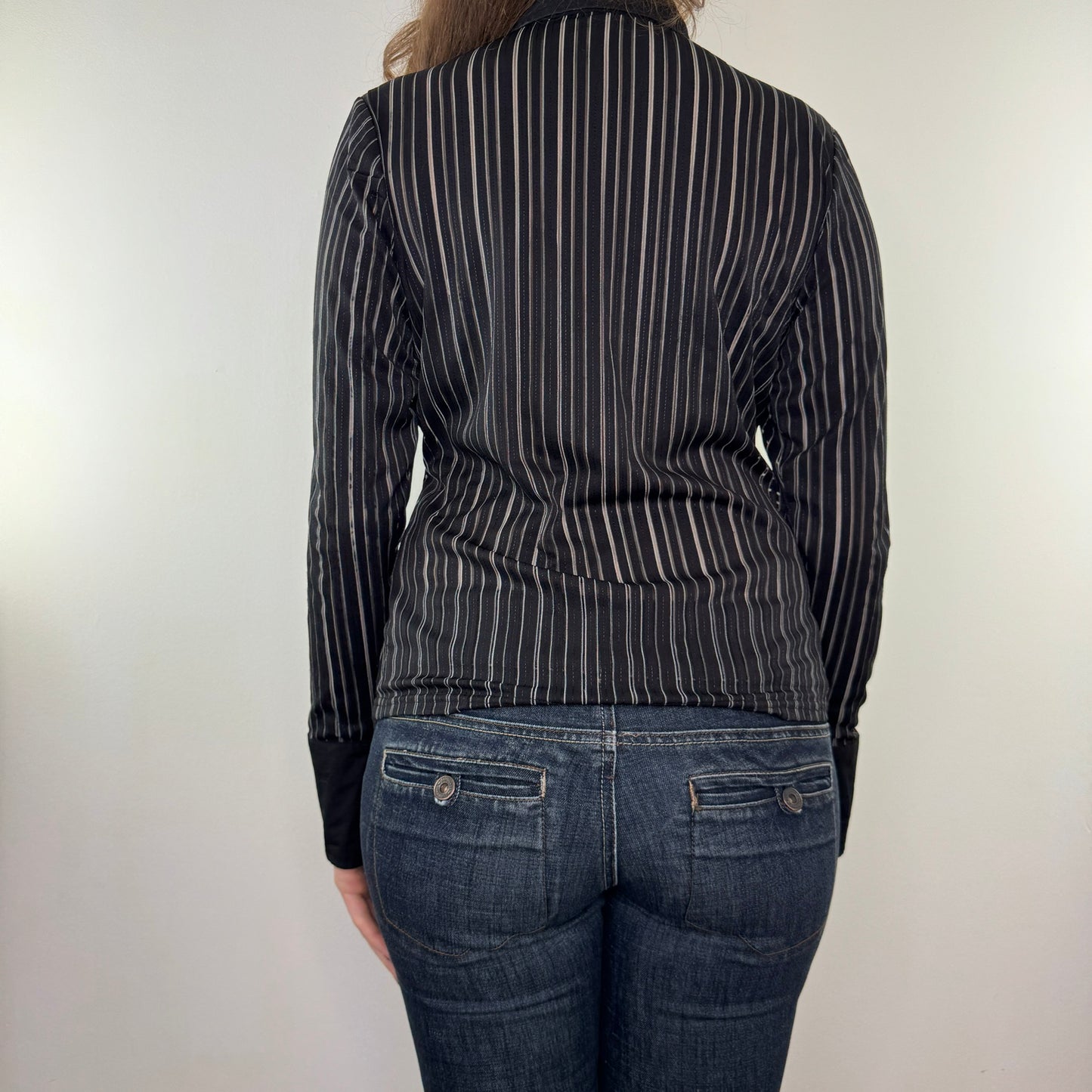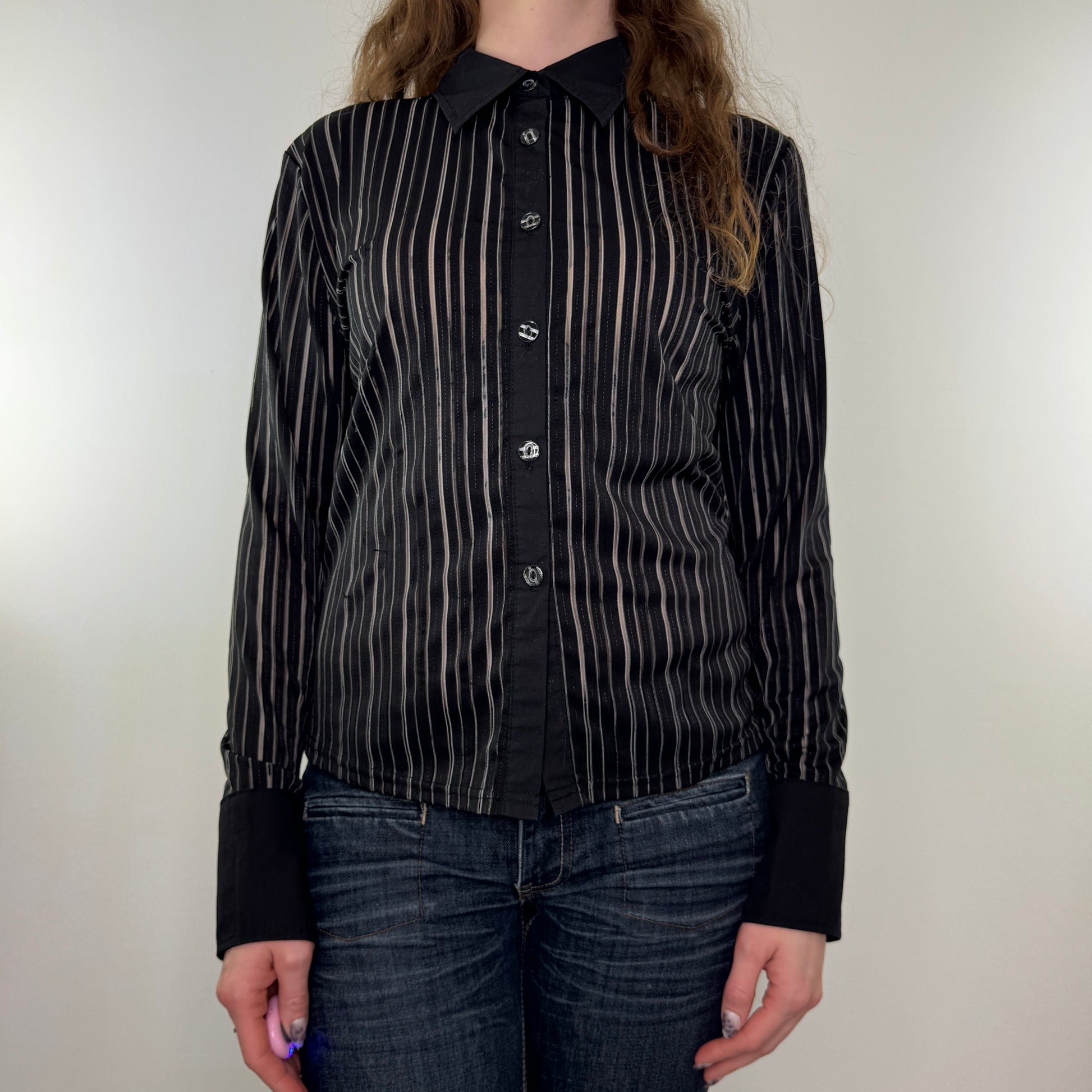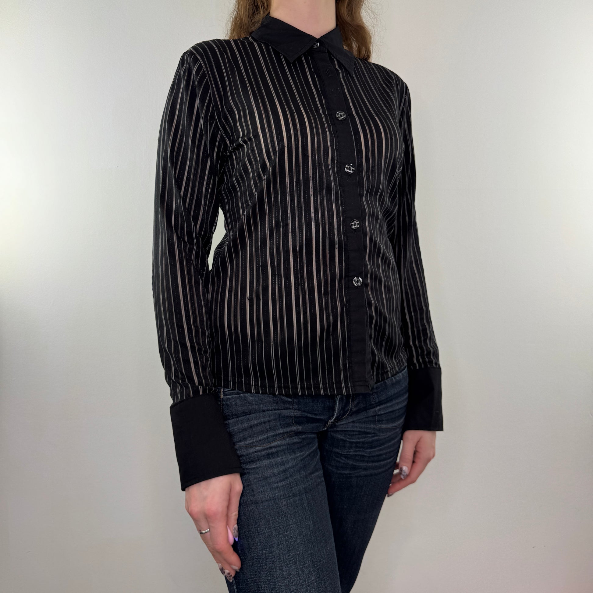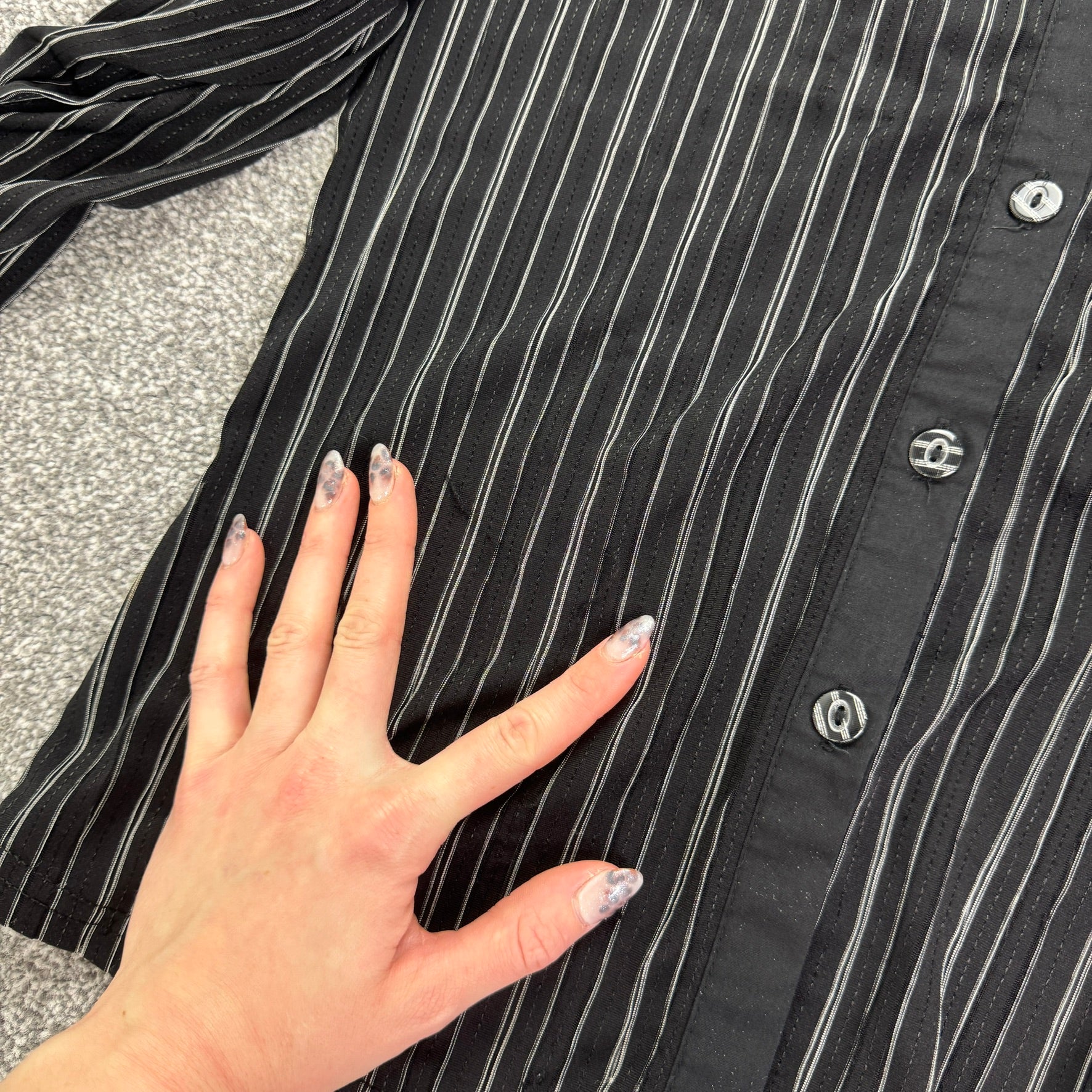 Y2K vintage sheer pinstripe button up stretchy long sleeve shirt