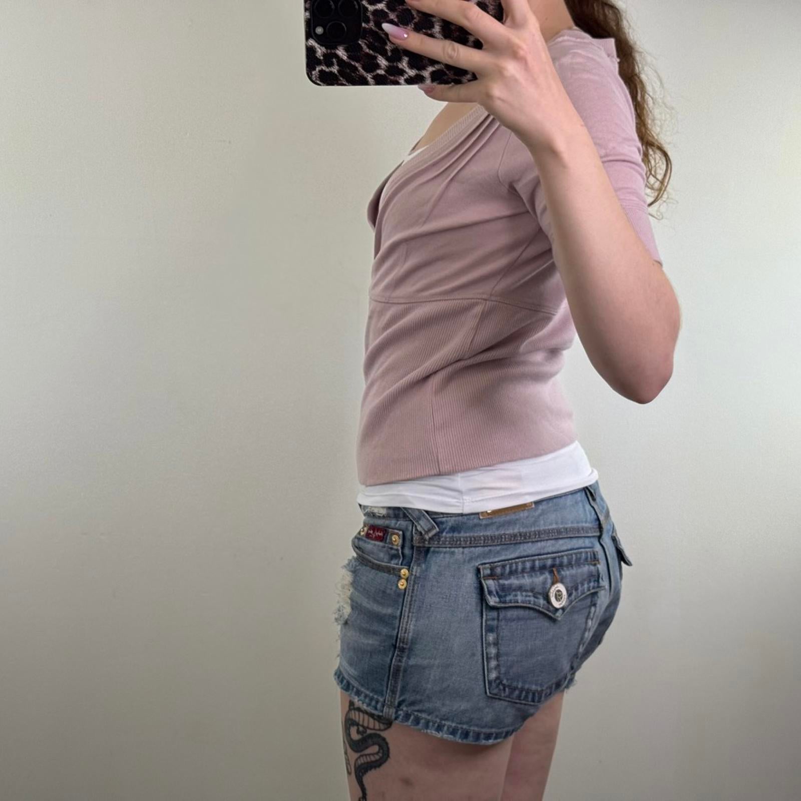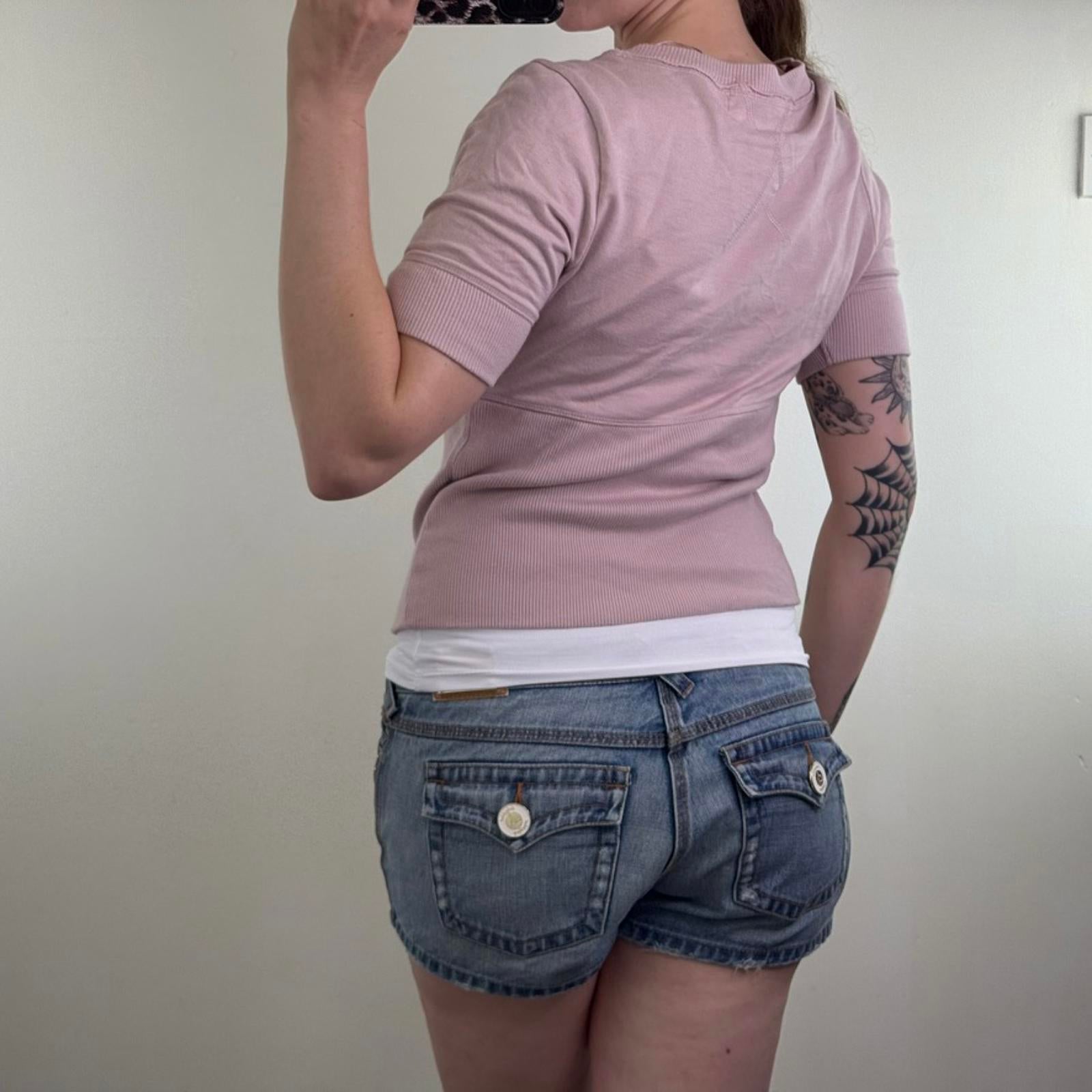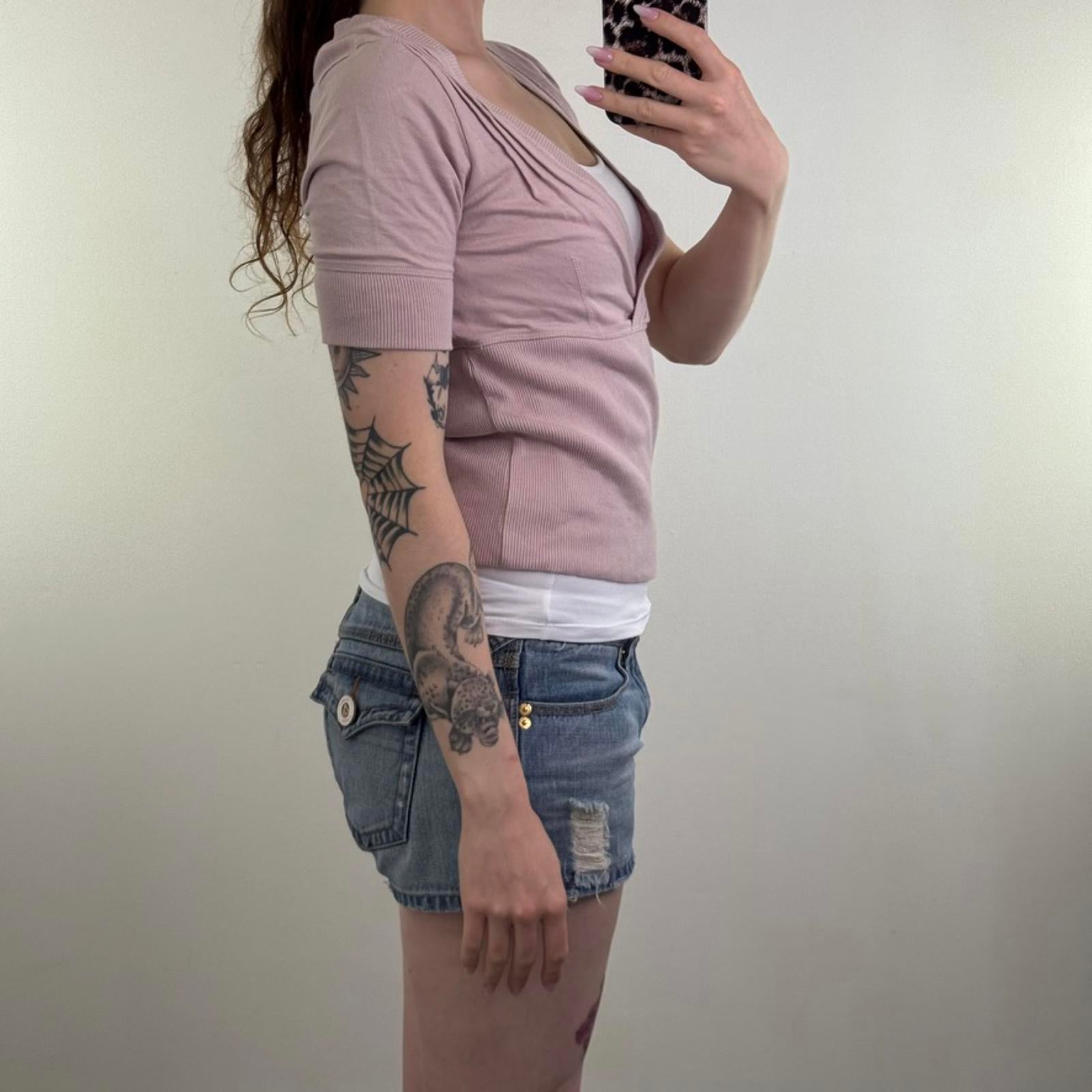Y2K vintage short sleeve jumper sweatshirt v neck ribbed dusty pink