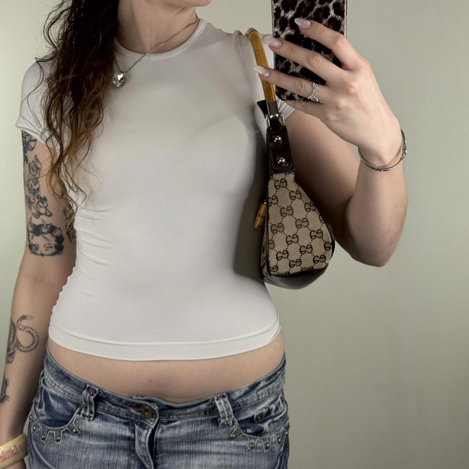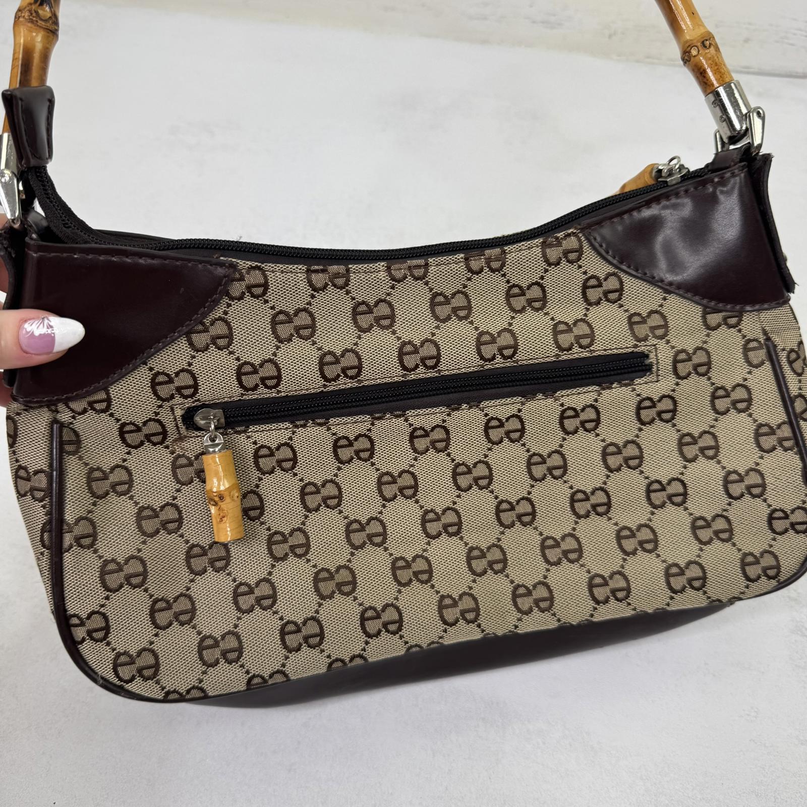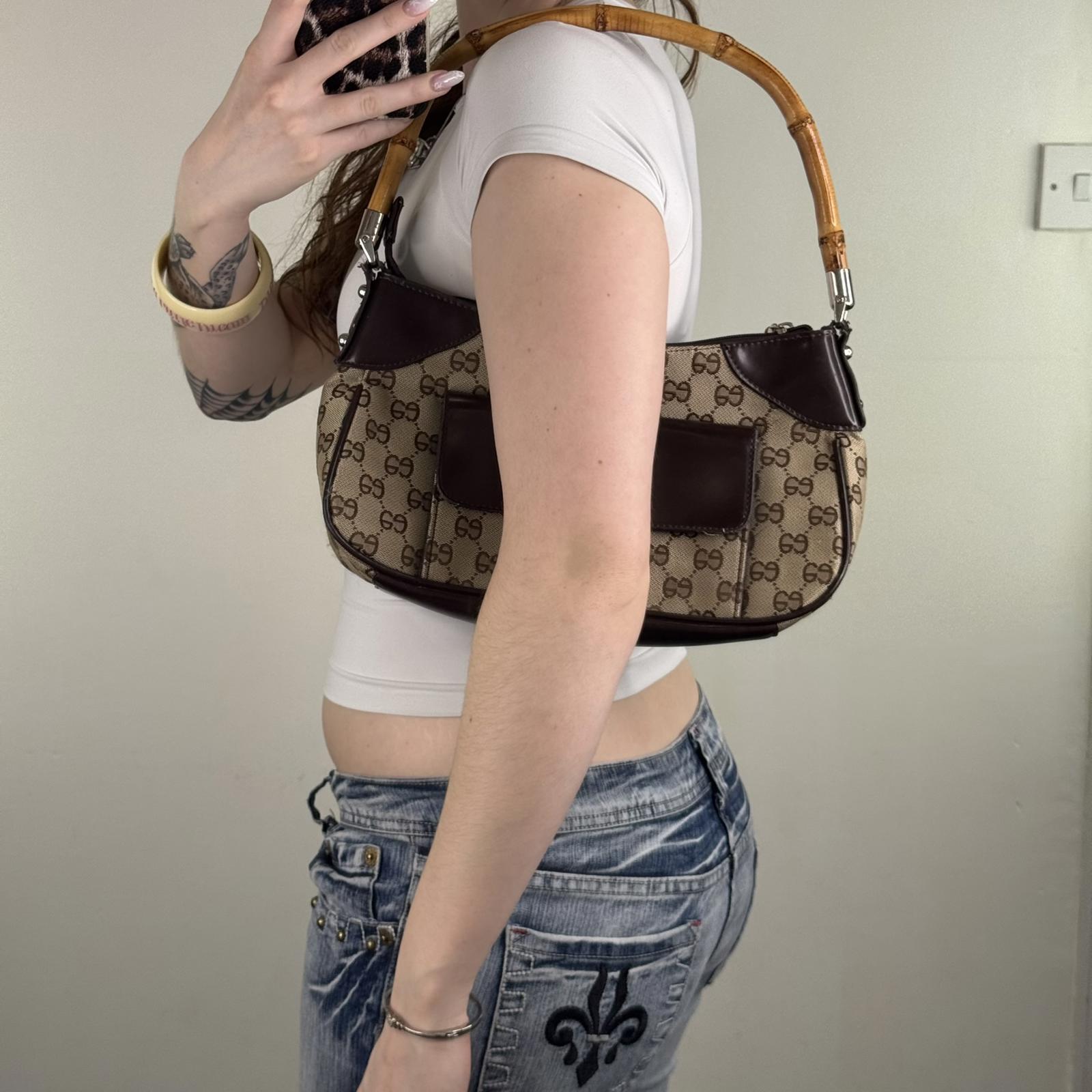Y2K vintage shoulder bag bamboo handle small faux leather trim circle