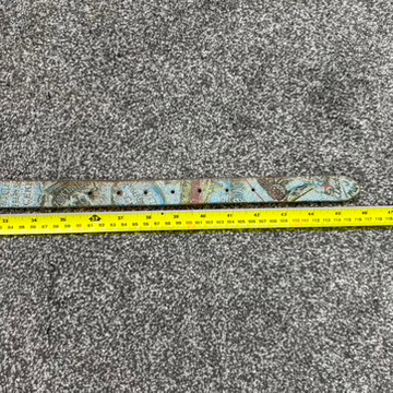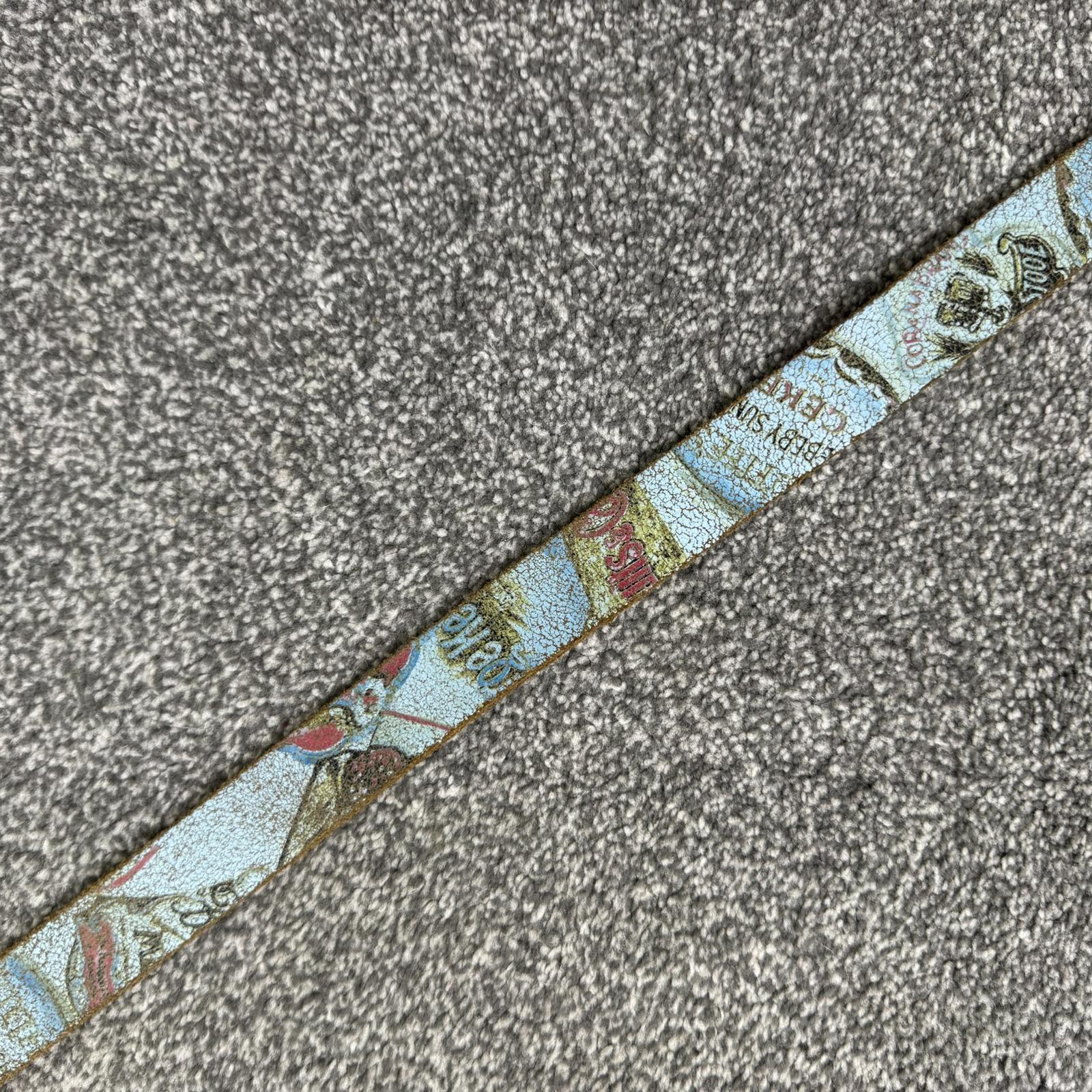 Y2K vintage skinny genuine leather belt graphic print rectangle buckle baby blue