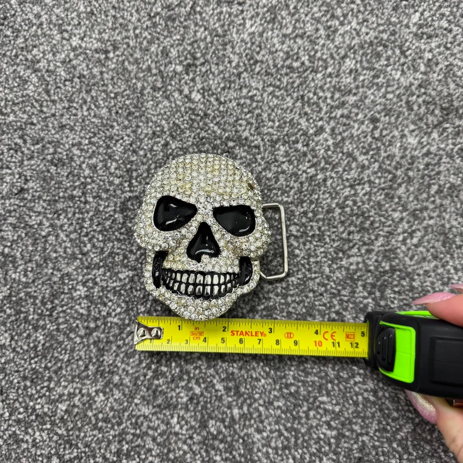 Y2K vintage skull rhinestone belt buckle mcbling embellished oversized chunky