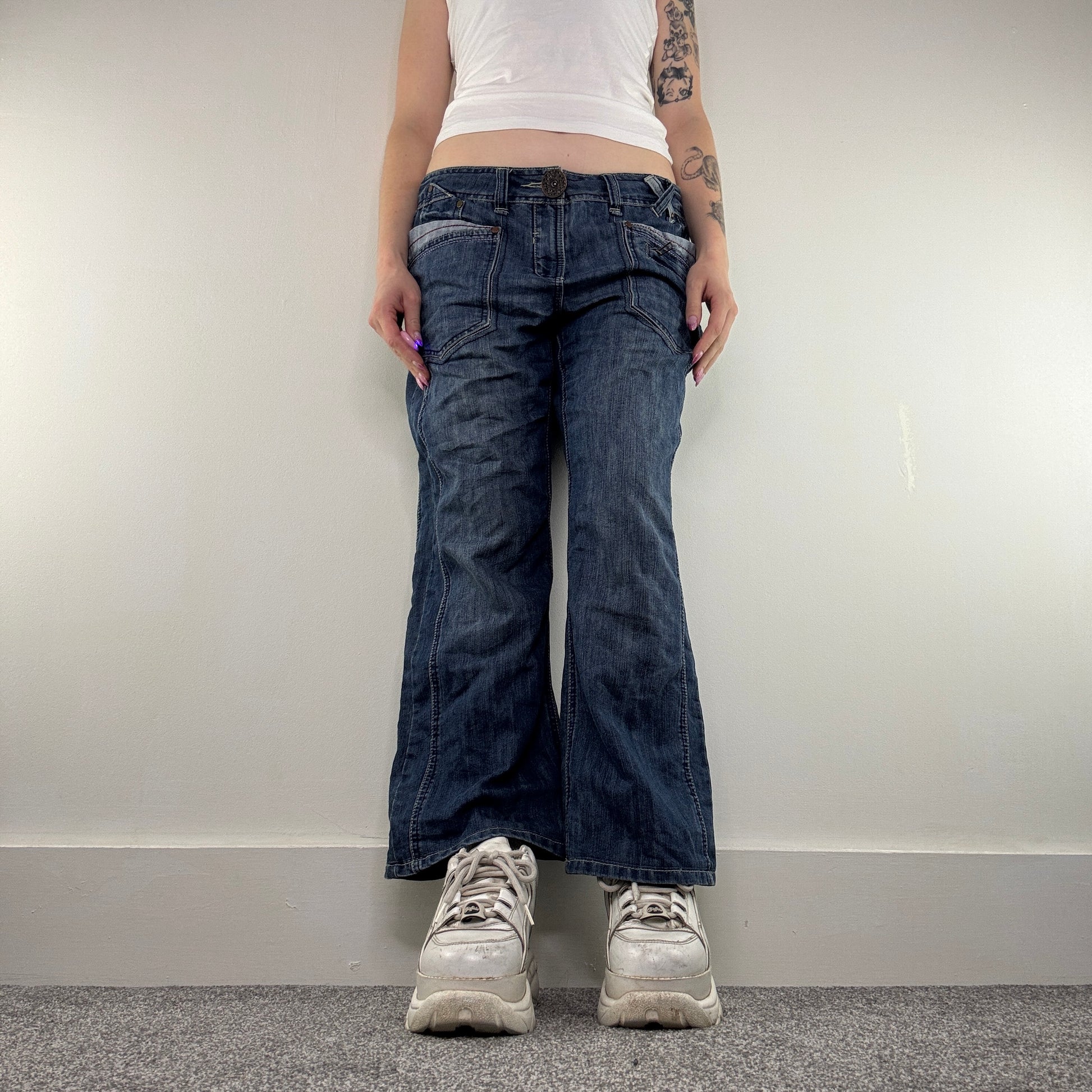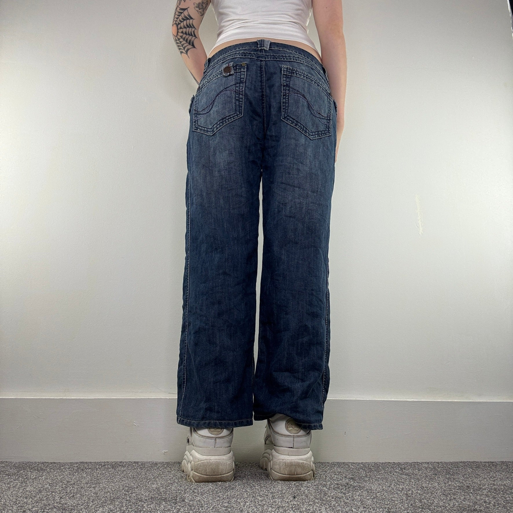 Y2K vintage slouchy baggy jeans faded denim mid rise two tone utility cargo