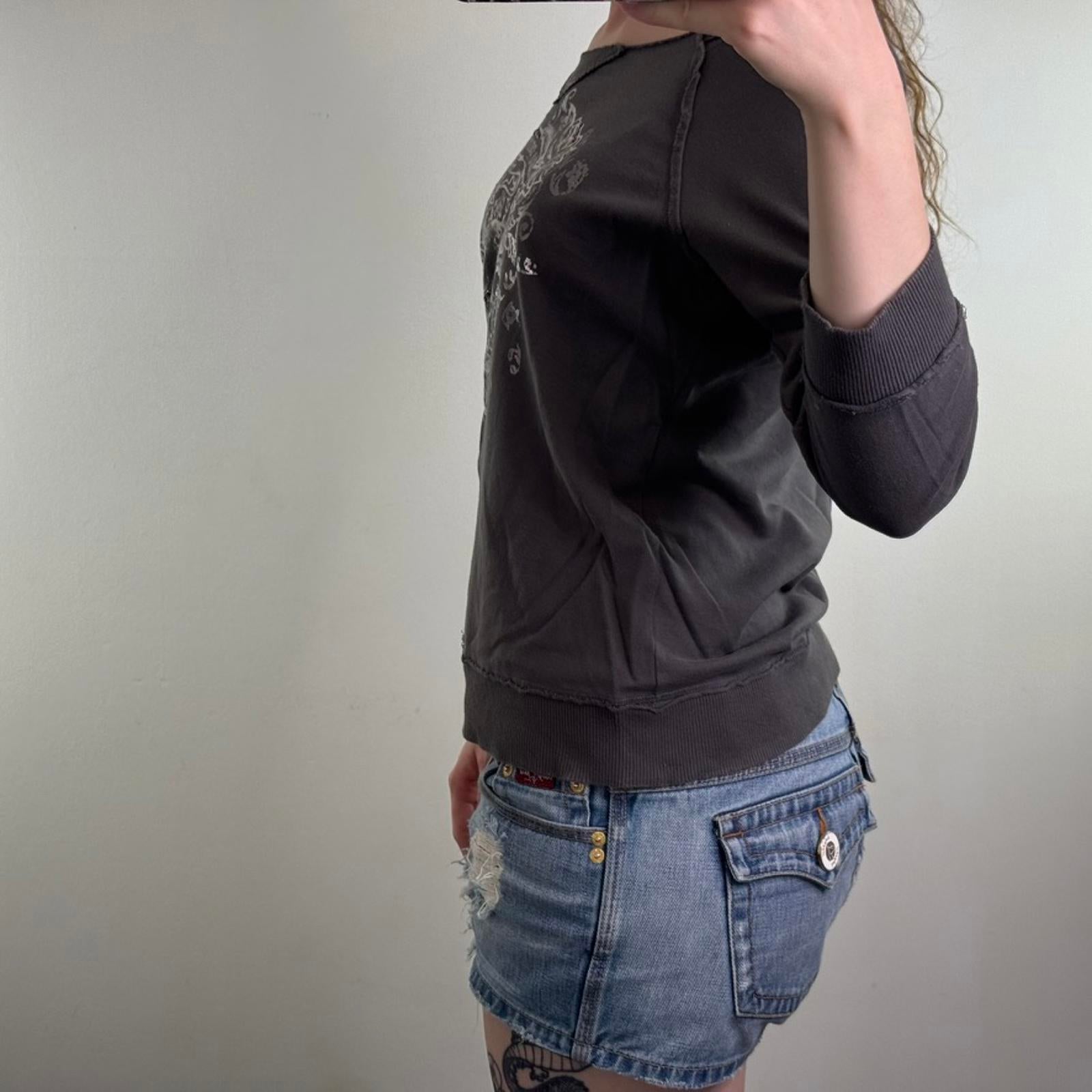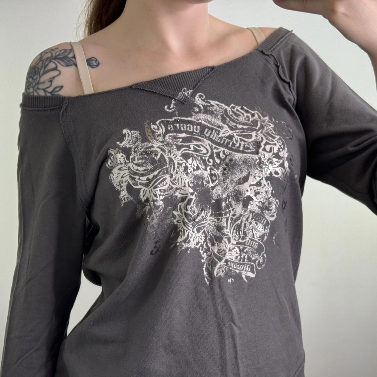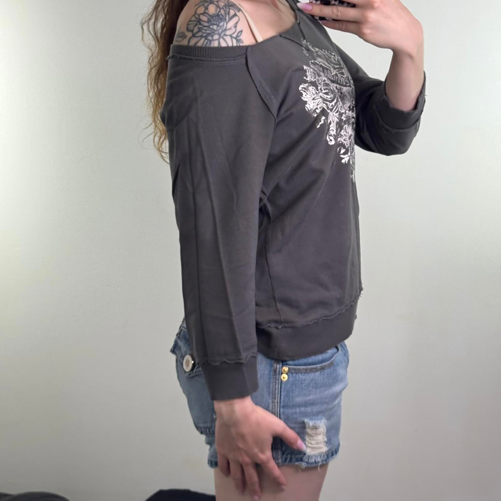 Y2K vintage slouchy off the shoulder jumper graphic print filigree silver grey
