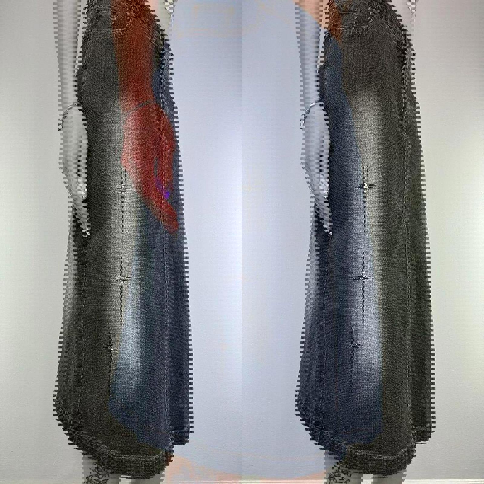 Y2K vintage sparkle embroidered rhinestone faded dark blue denim midi skirt