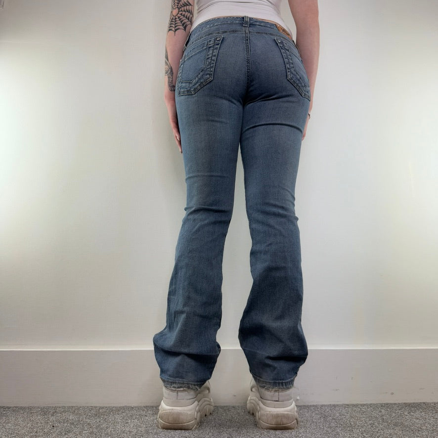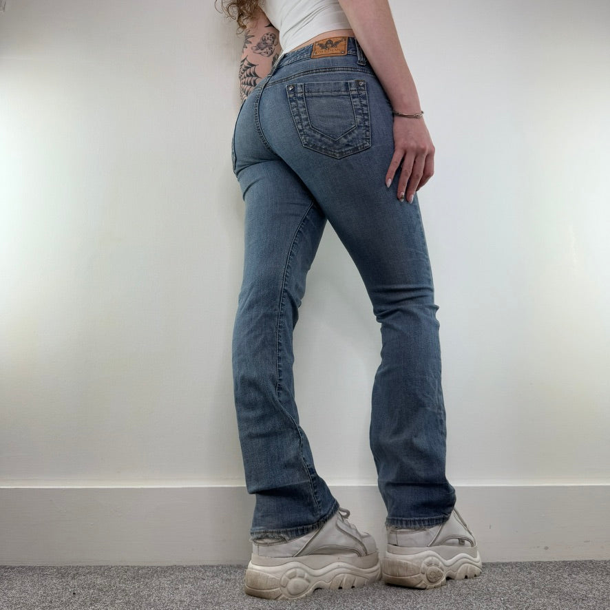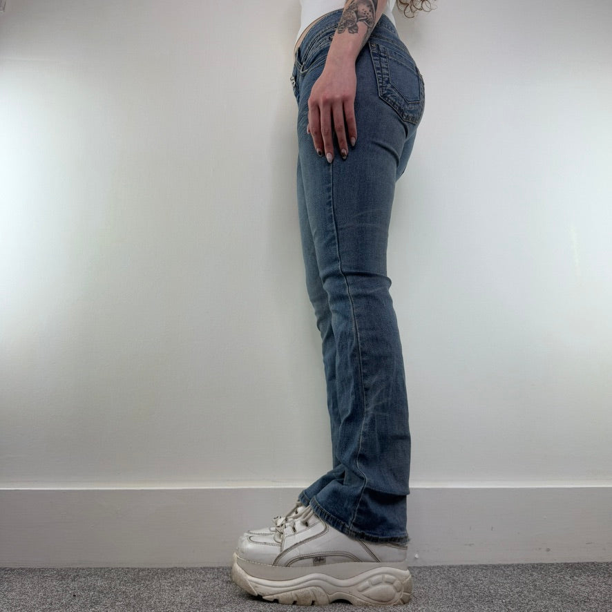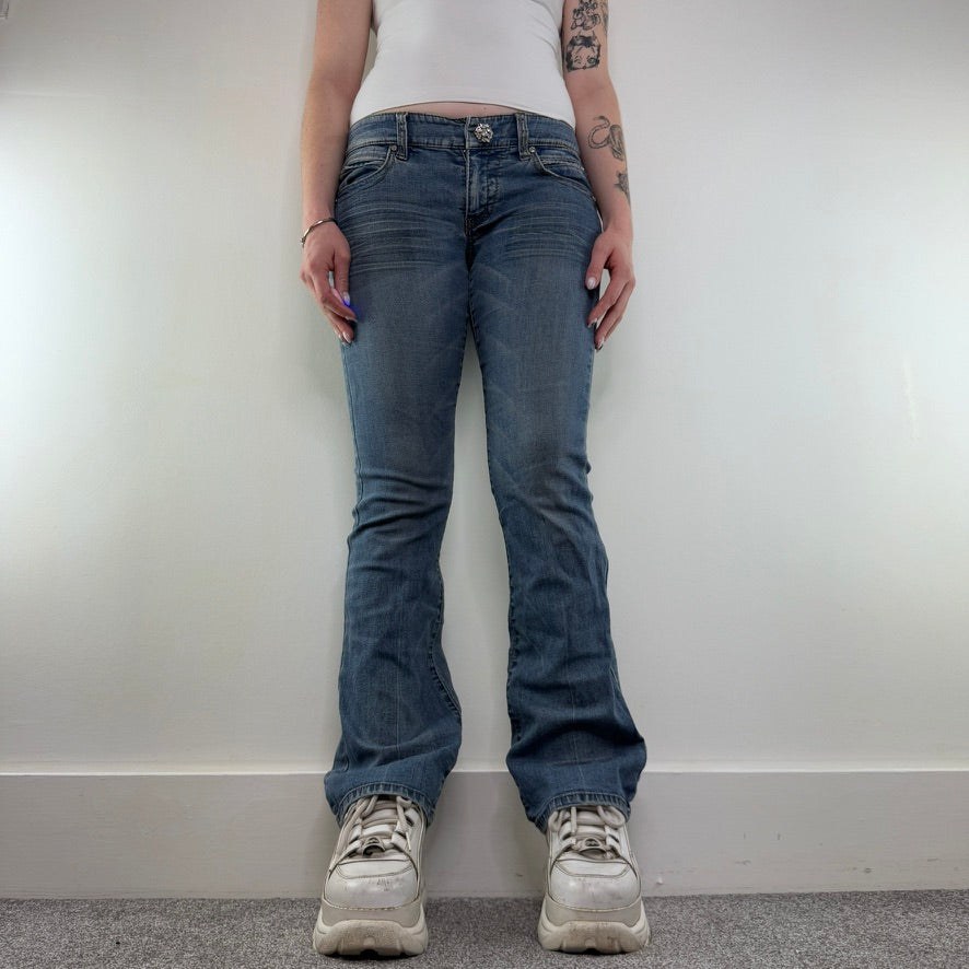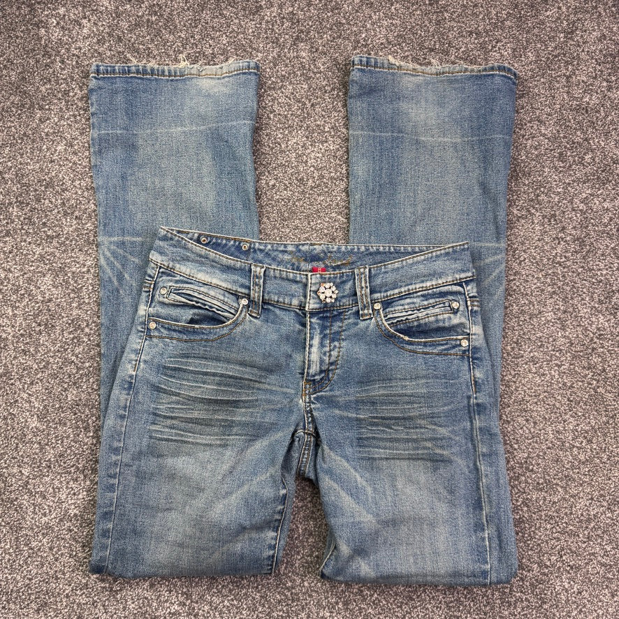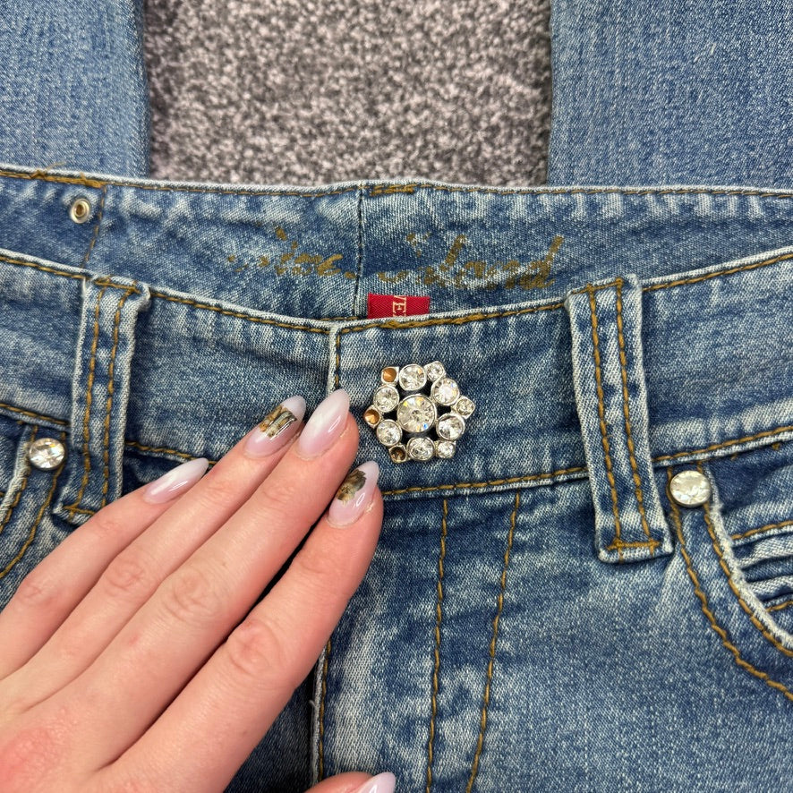 Details: stretchy glitter denim, rhinestone embellishments, faded denim look, light blue,