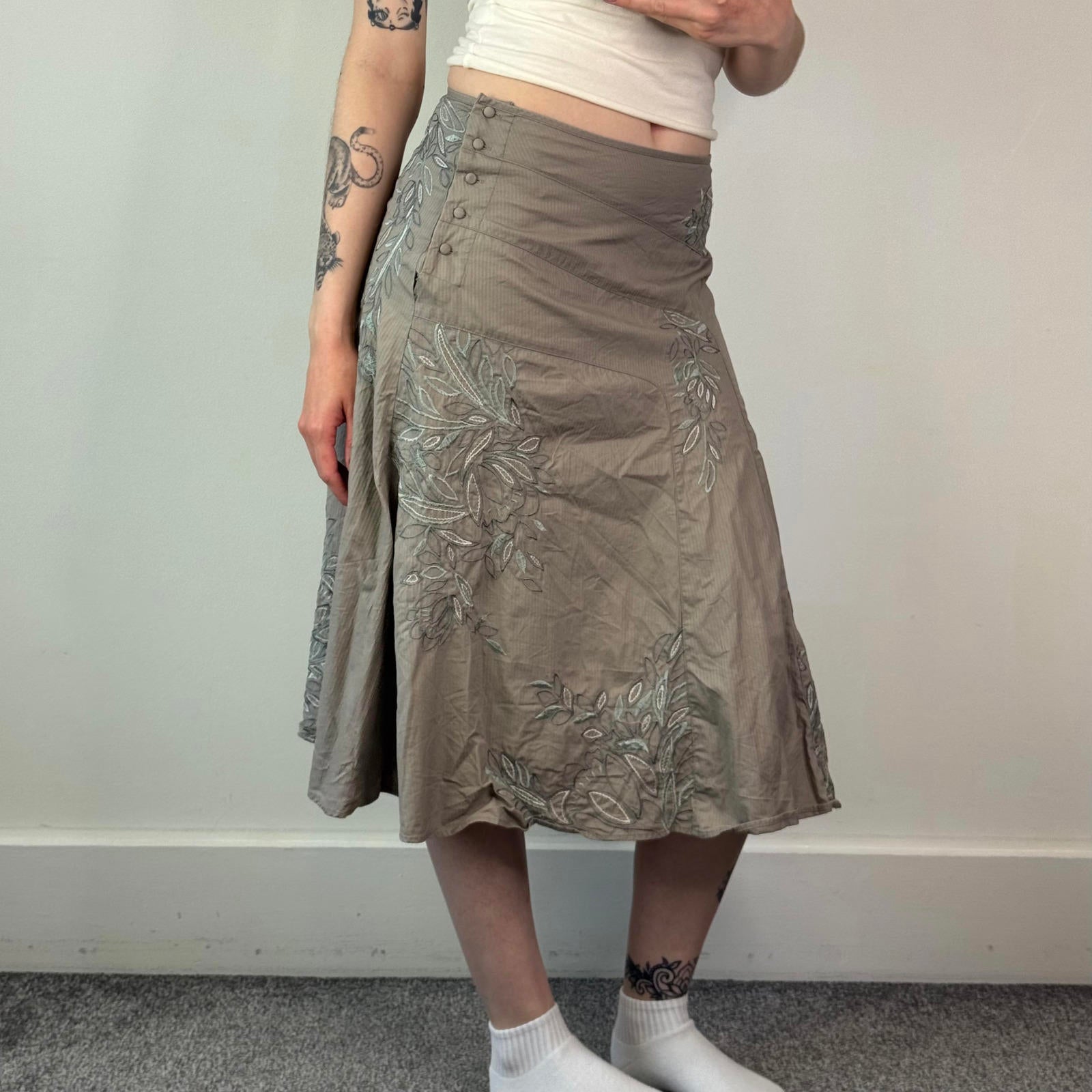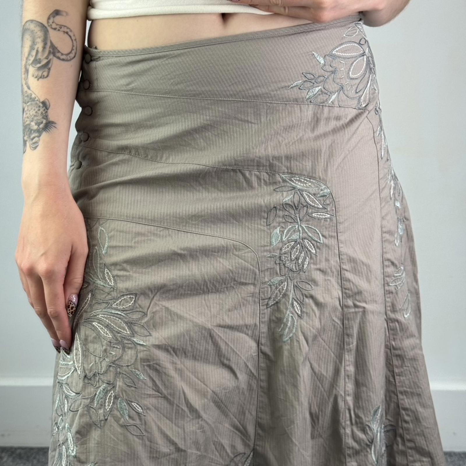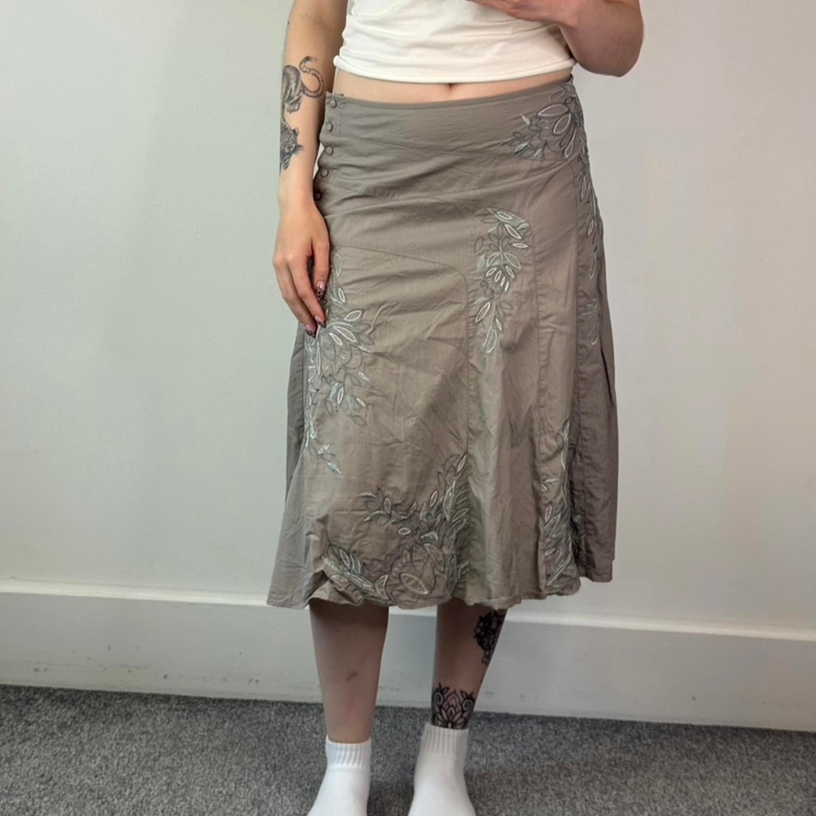 Y2K vintage stripe floral embroidered midi skirt a line button up 100% cotton