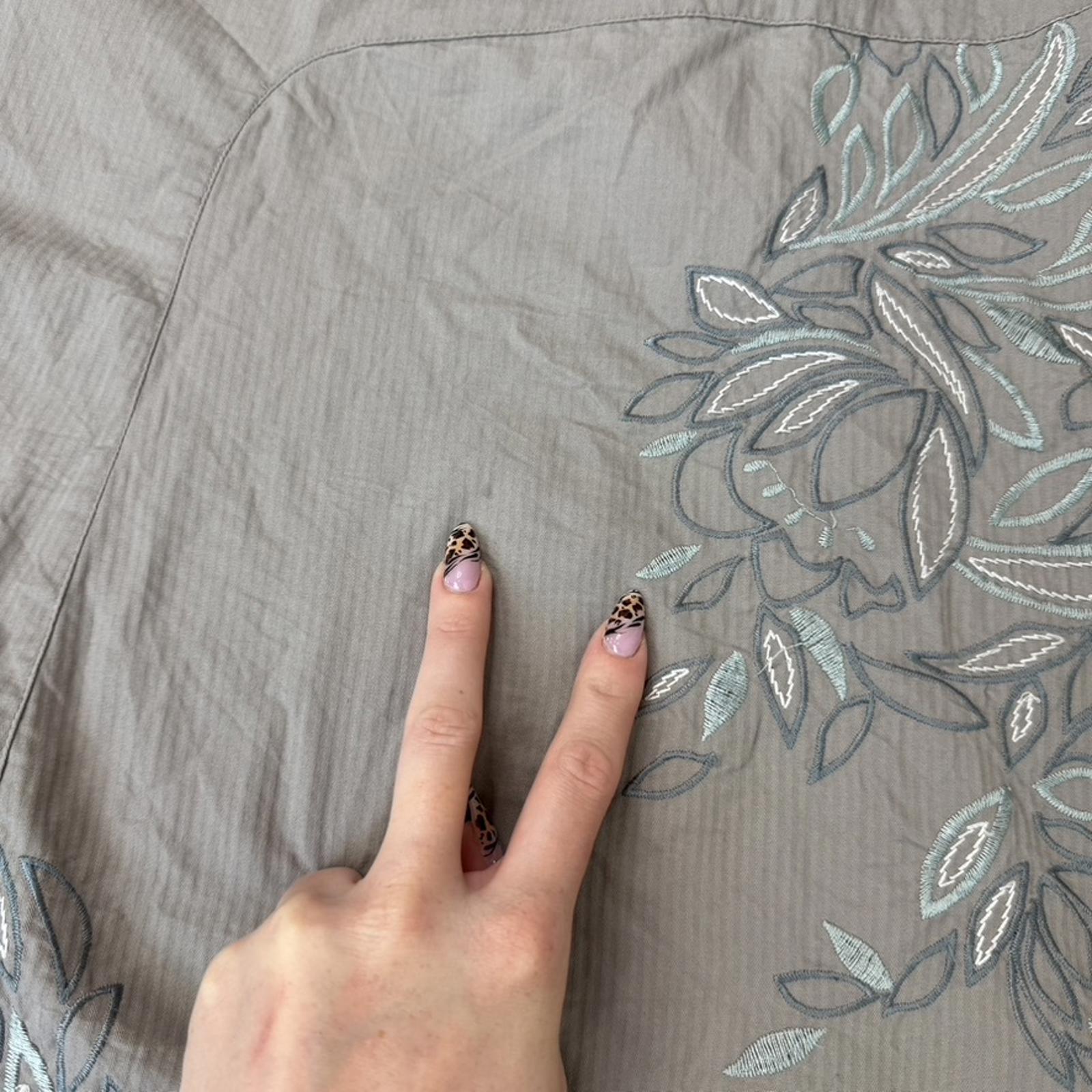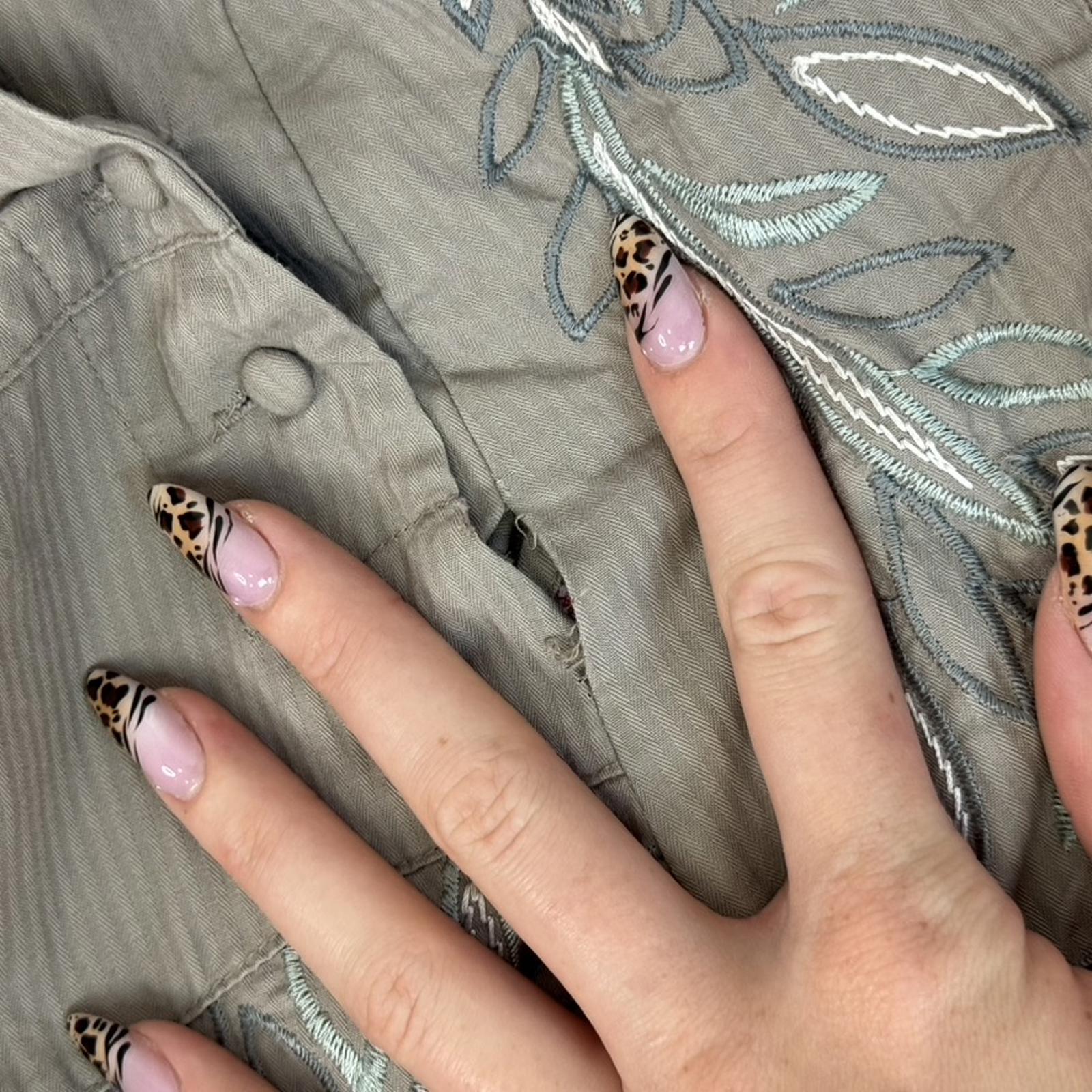 Light brown with green embroidery