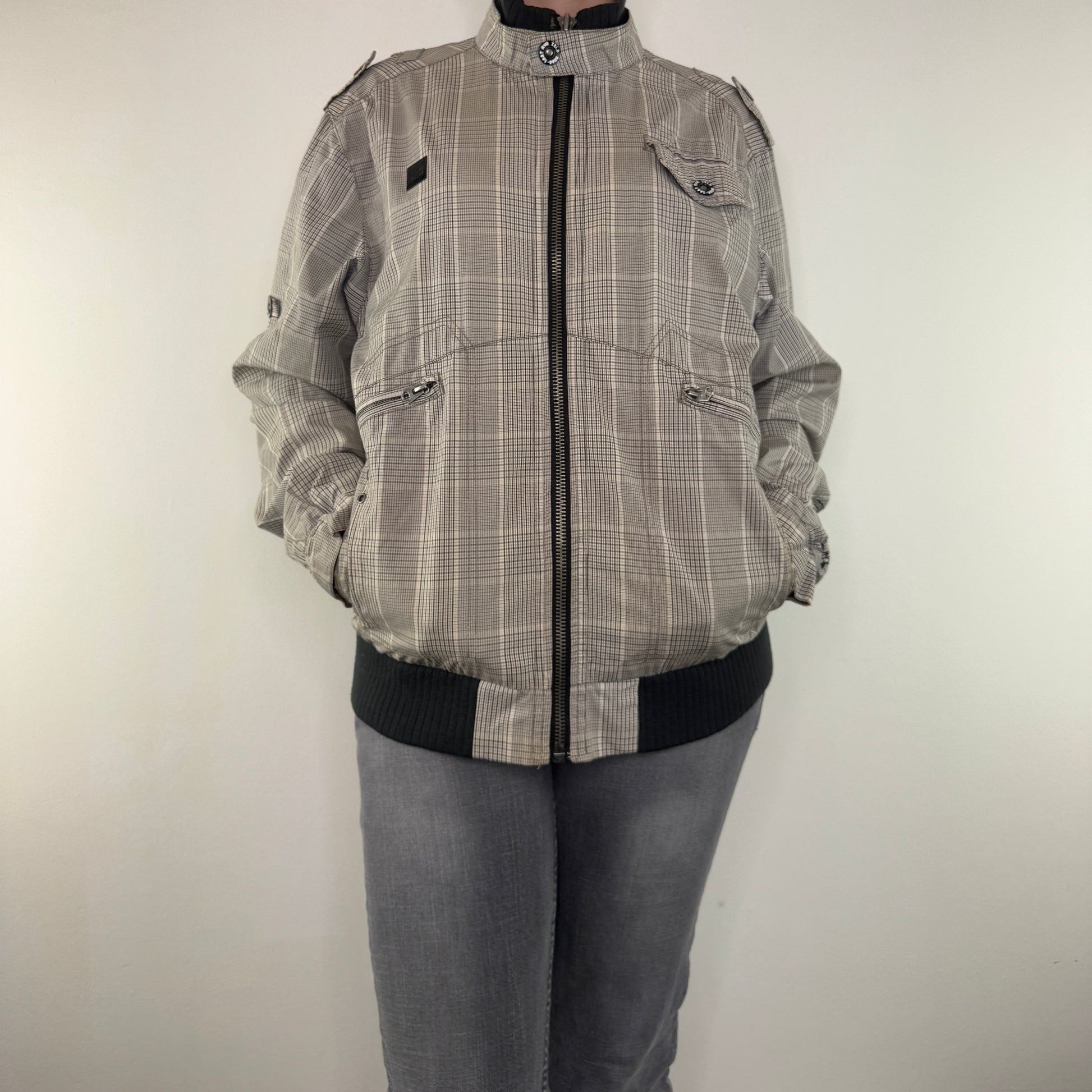 Y2K vintage tartan lightweight zip up jacket