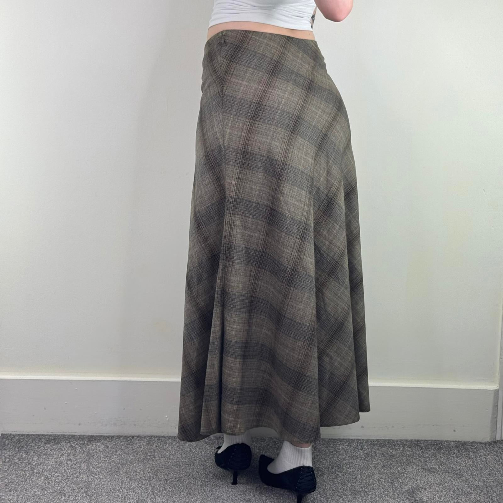 Y2K vintage tartan maxi skirt check print a line full length long