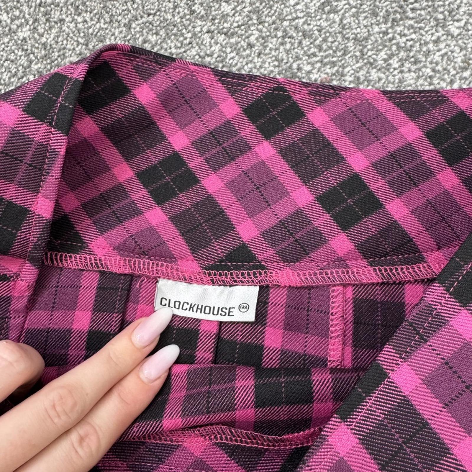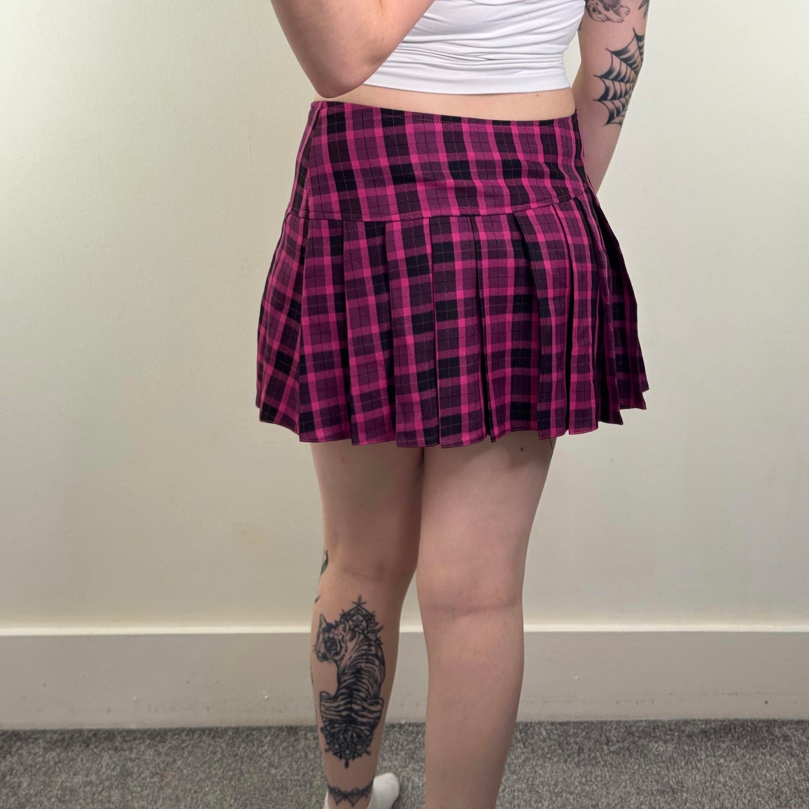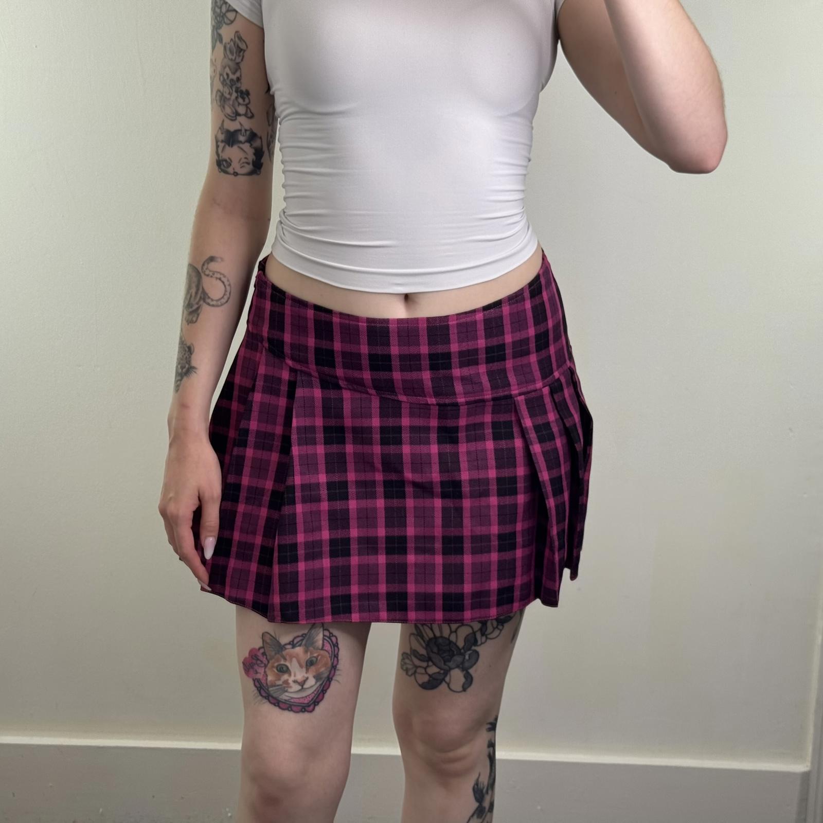 Y2K vintage tartan print mini skirt pleated black pink check pattern mid rise