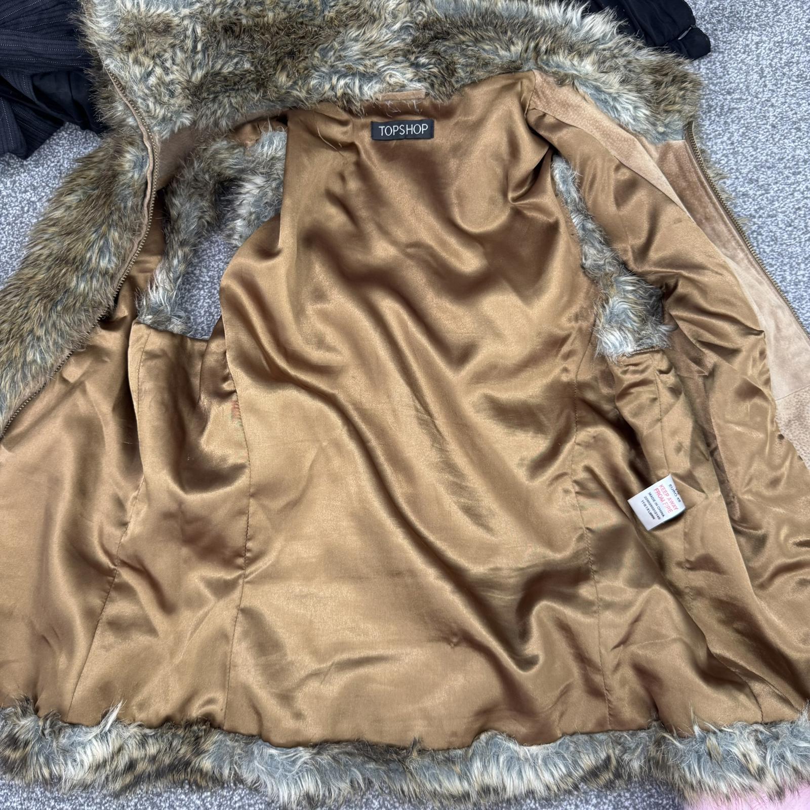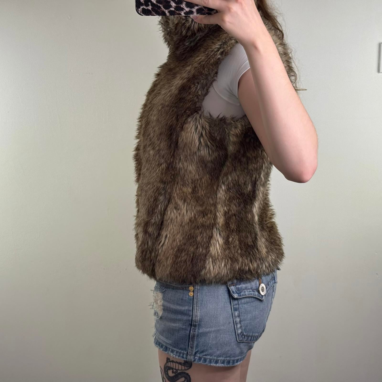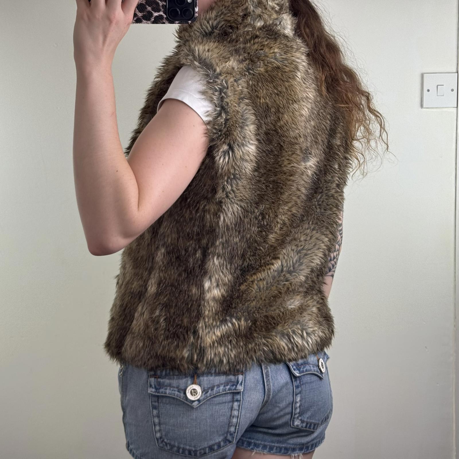 Y2K vintage Topshop faux fur sleeveless gilet body warmer high neck brown