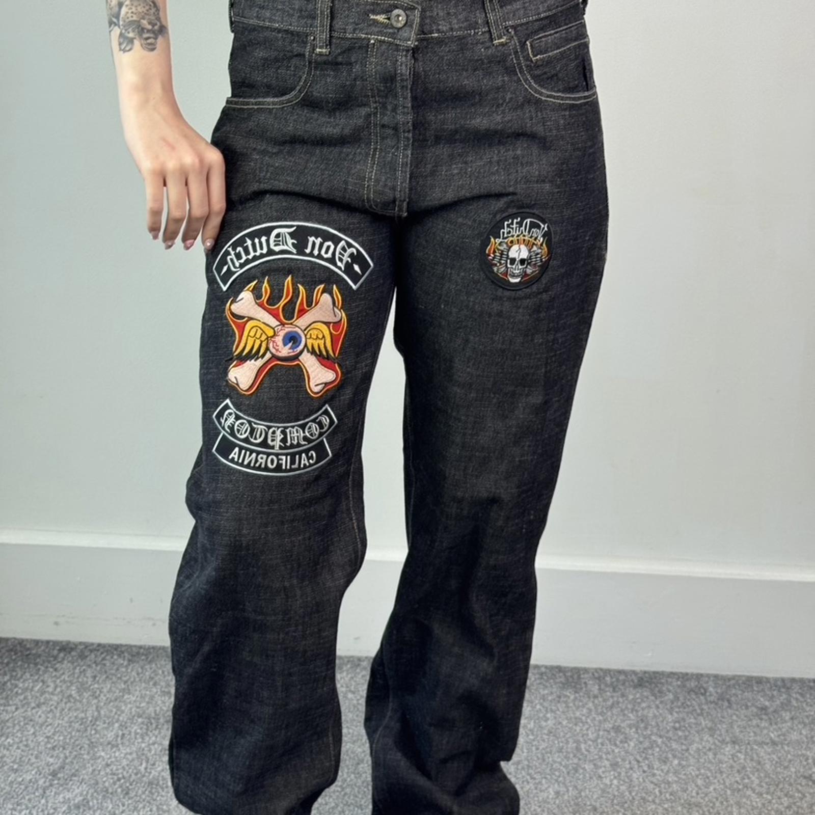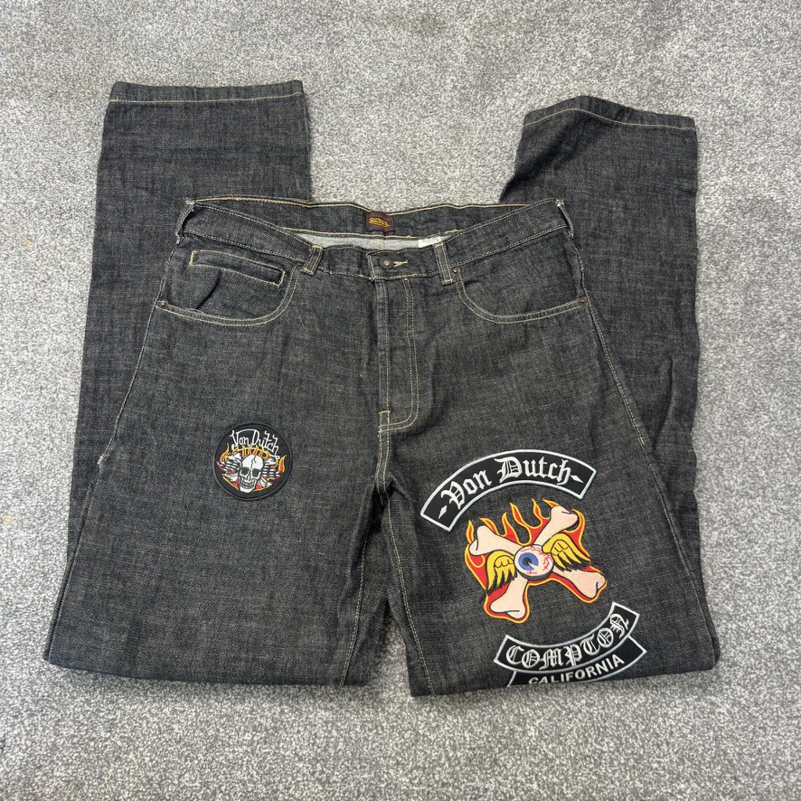Y2K vintage Von Dutch straight leg embroidered patches jeans