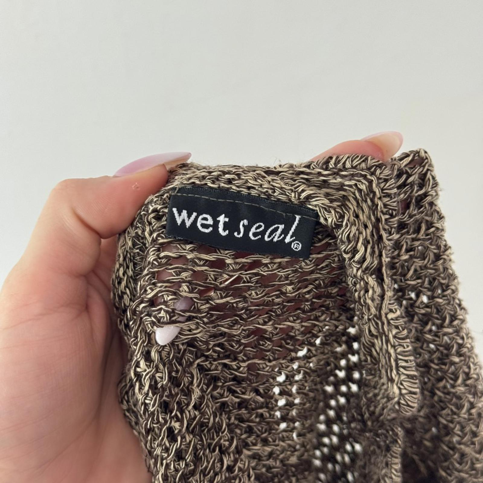 Y2K vintage Wet Seal knit v neck top low cut slight crop bow stretchy brown