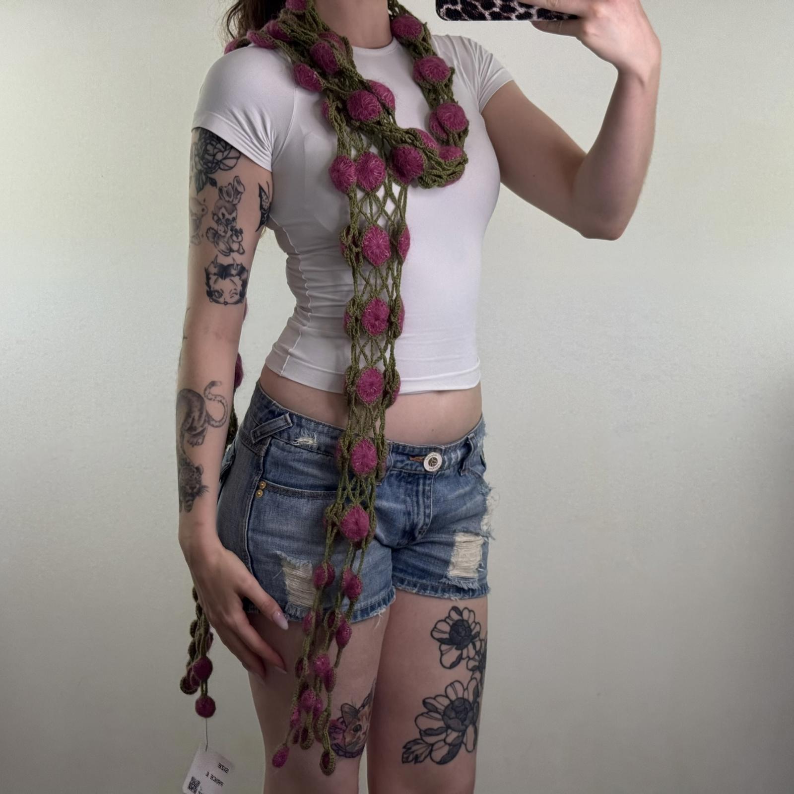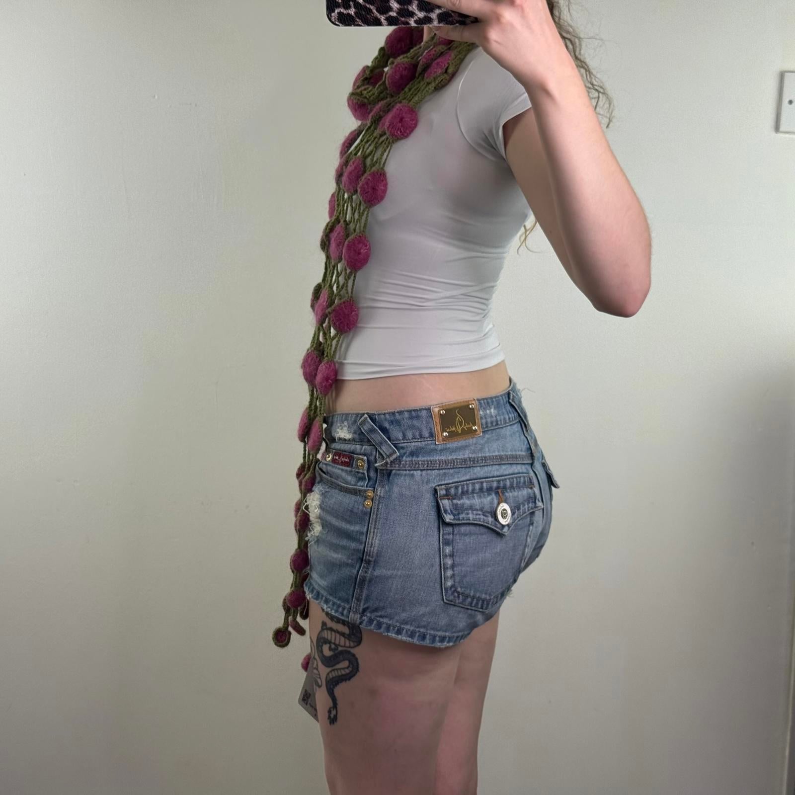 Y2K vintage wool blend knit scarf 3D pattern long length purple green
