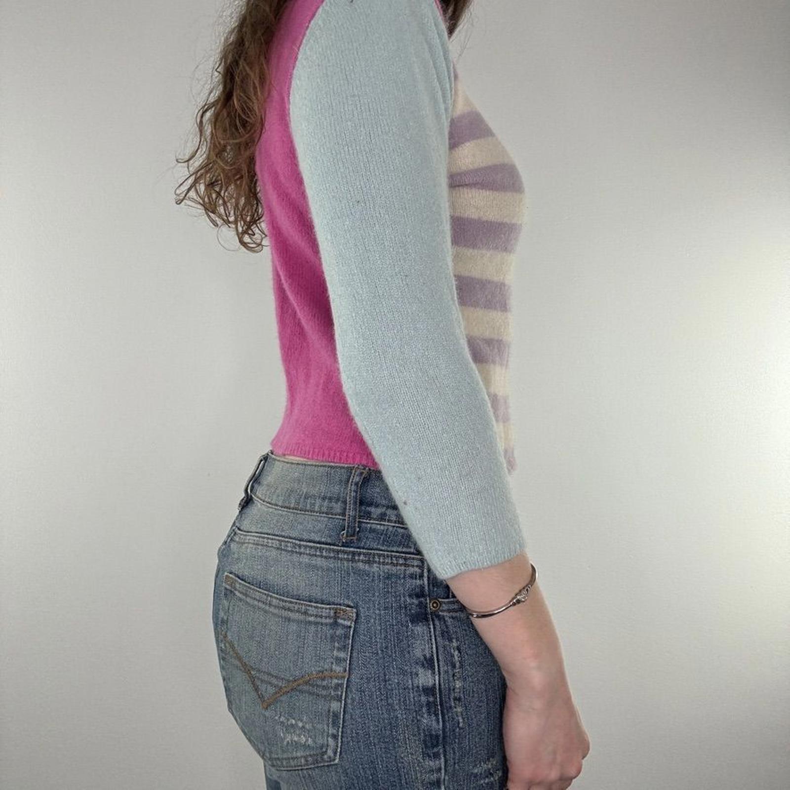 Y2K vintage wool stripe cherry jumper pastel block colours 3/4 sleeve knit