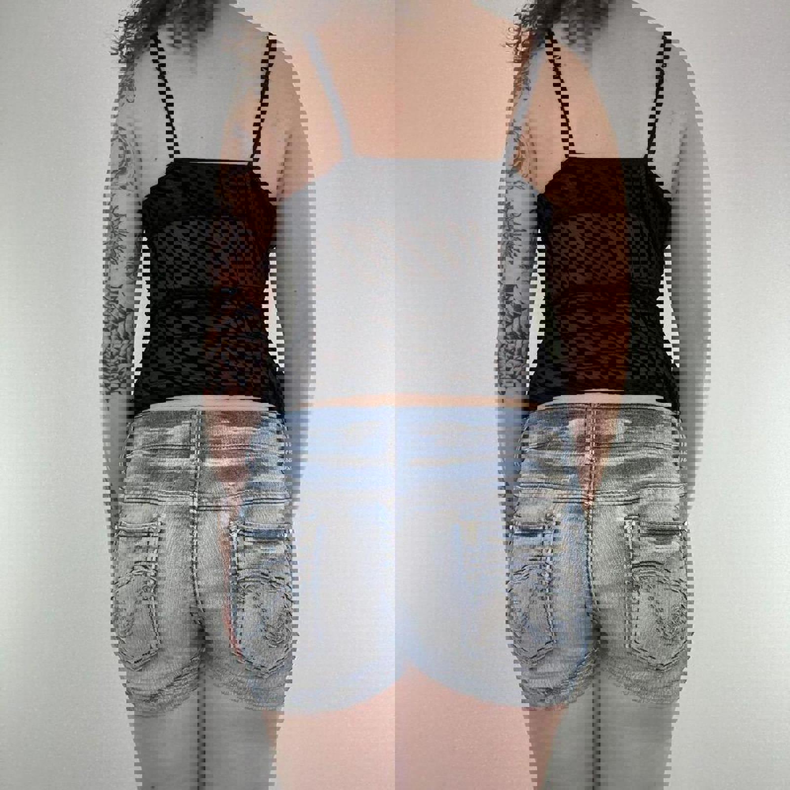 Y2K vintage zebra print mesh underwire cami top v neck stretchy built in bra 34B